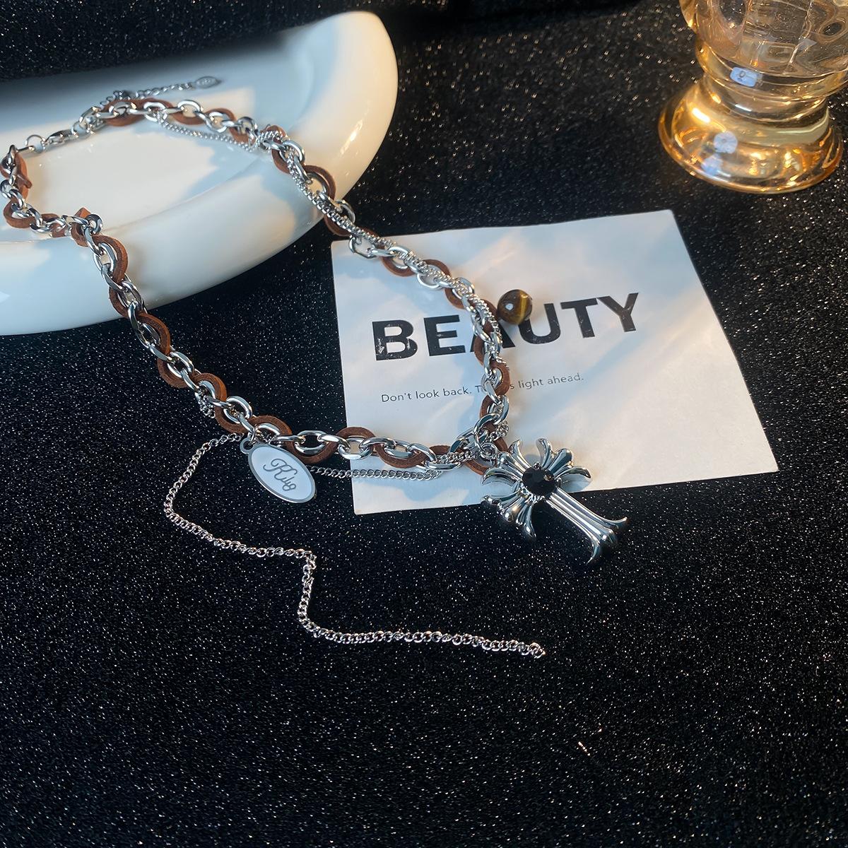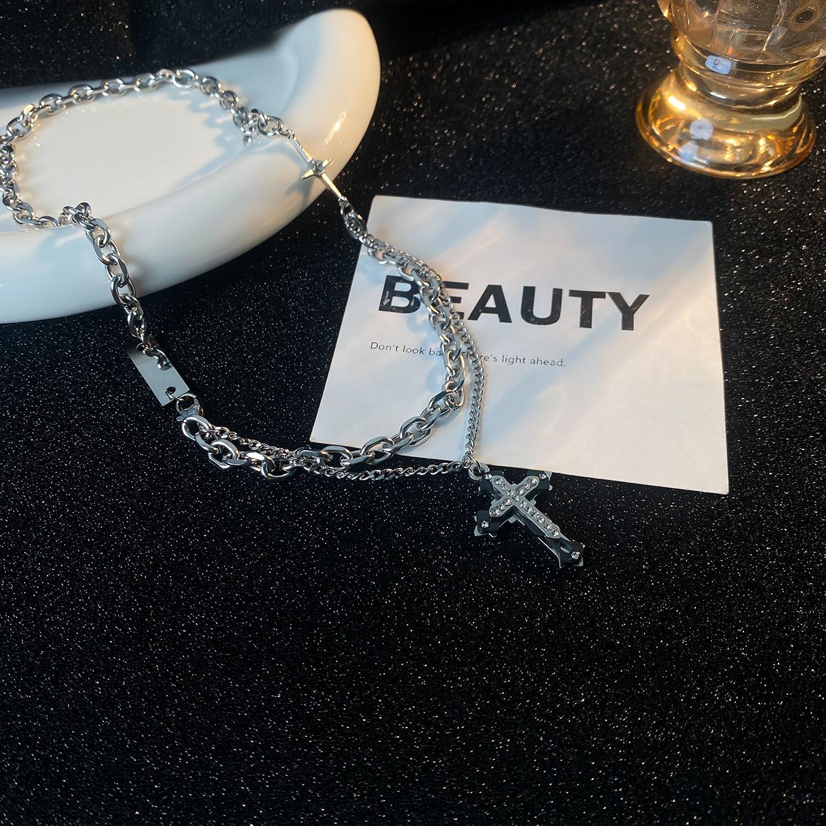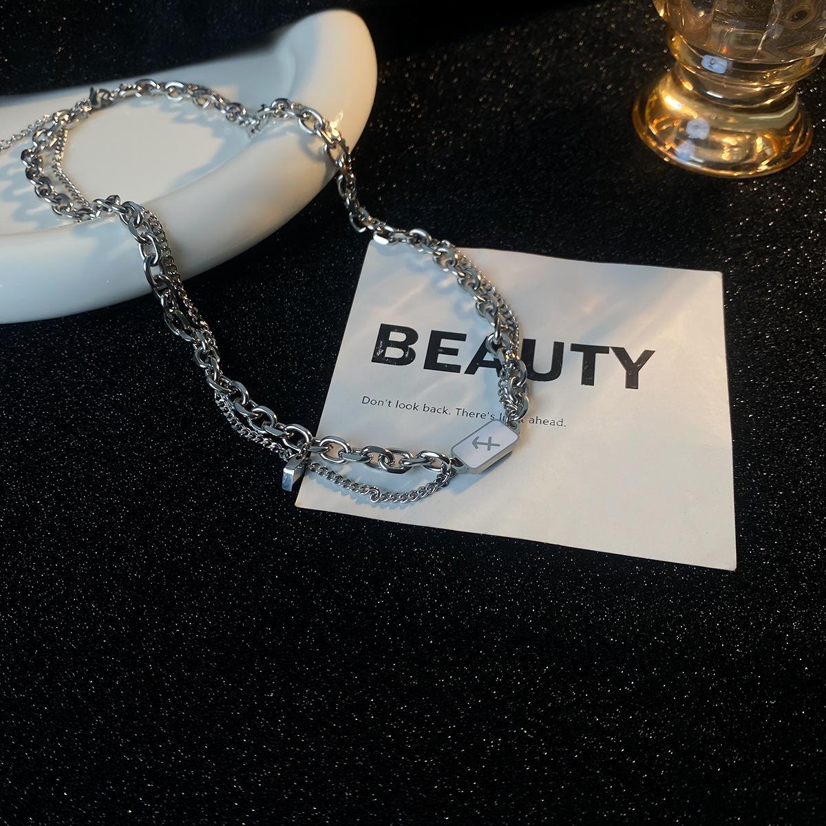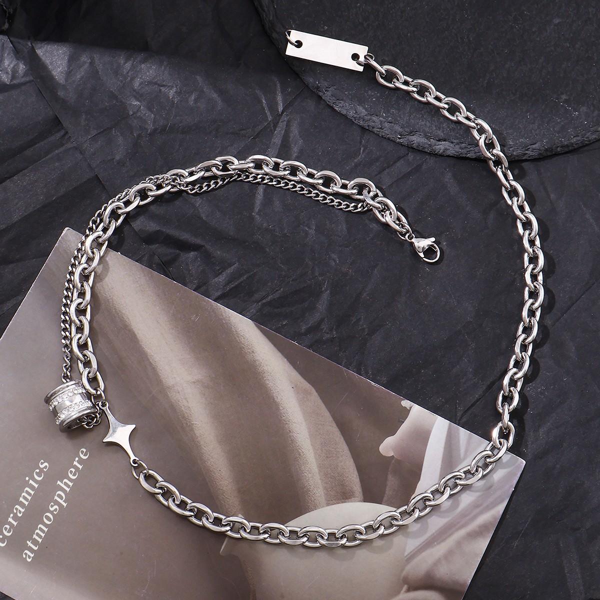 Collar punk de otoño e invierno con costuras de doble capa para hombre, diseño high street, cadena de suéter hip hop para pareja, joyería de acero de titanio que no se desvanece