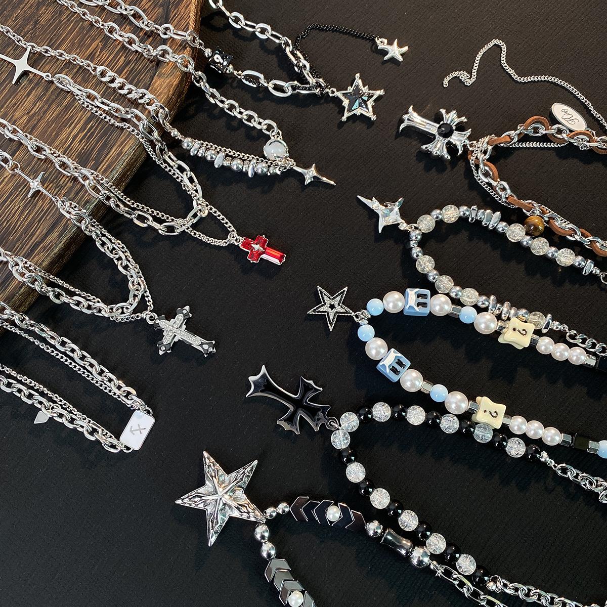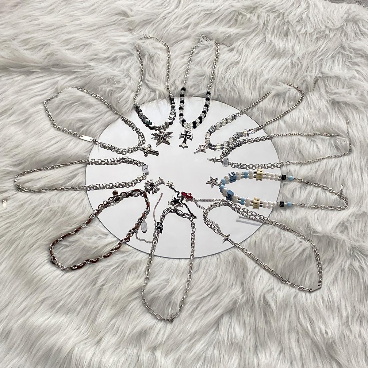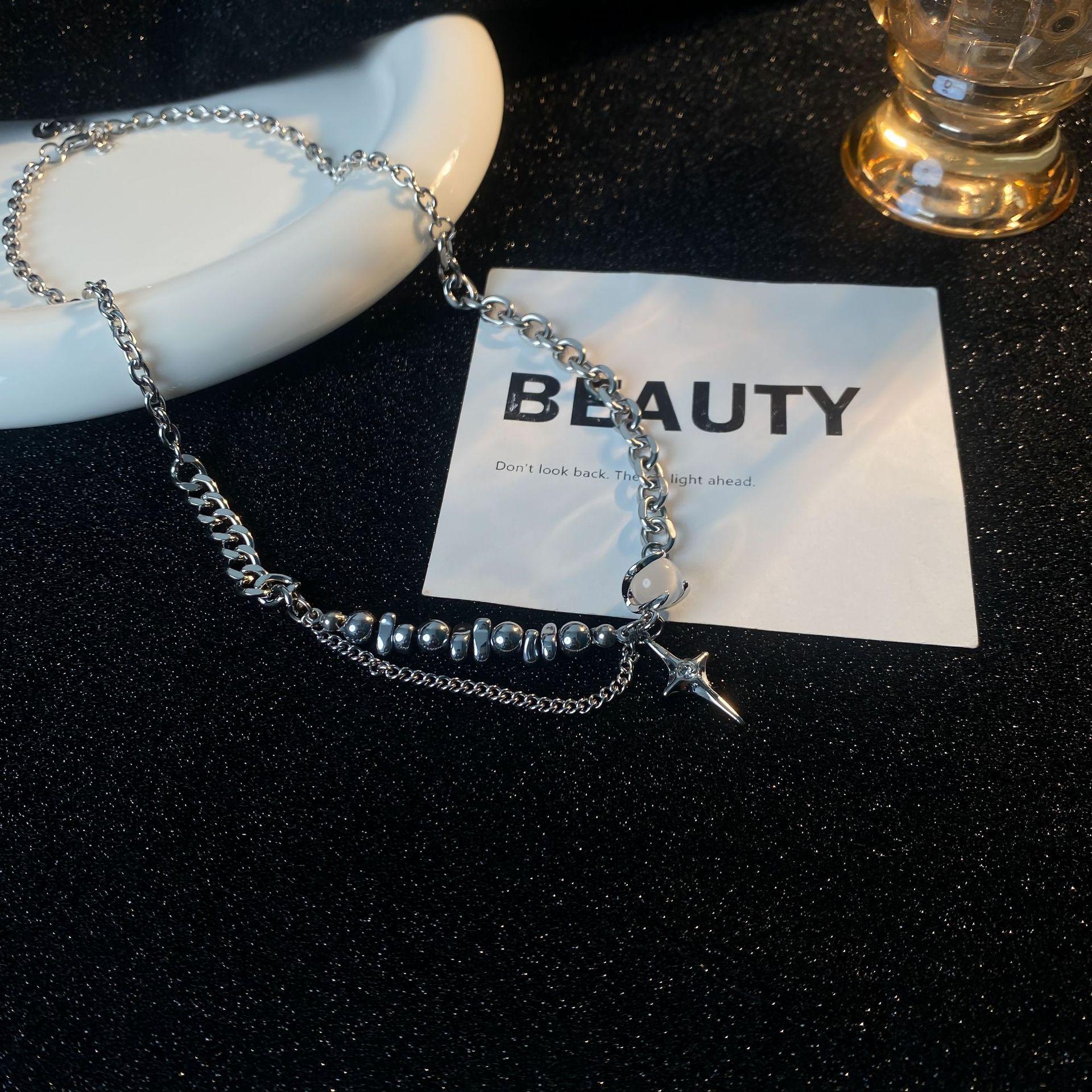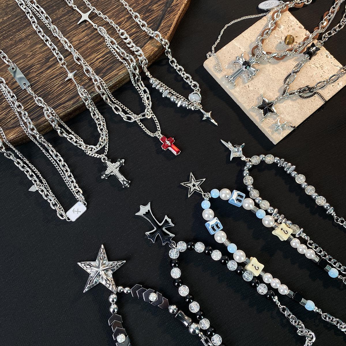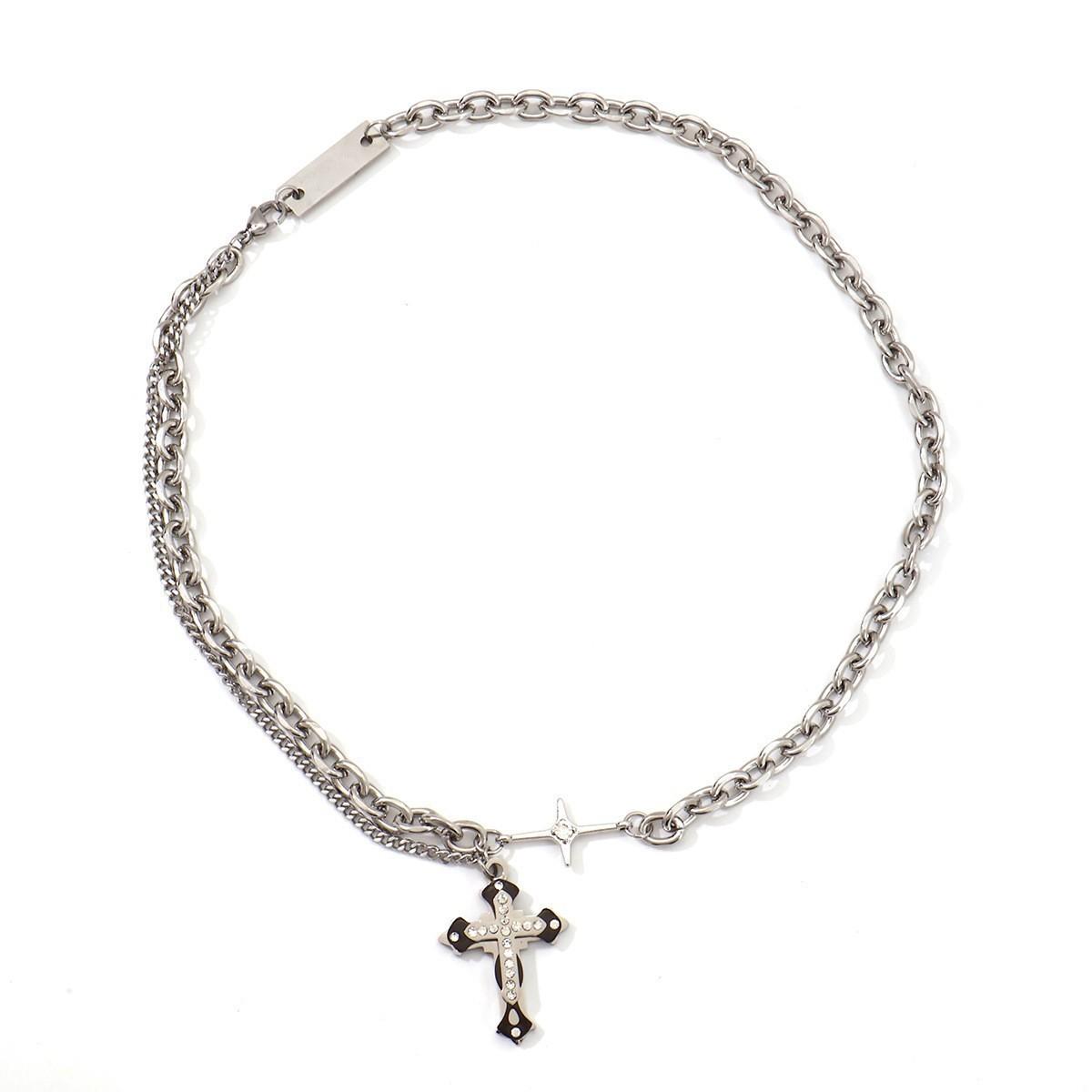 Collar punk de otoño e invierno con costuras de doble capa para hombre, diseño high street, cadena de suéter hip hop para pareja, joyería de acero de titanio que no se desvanece