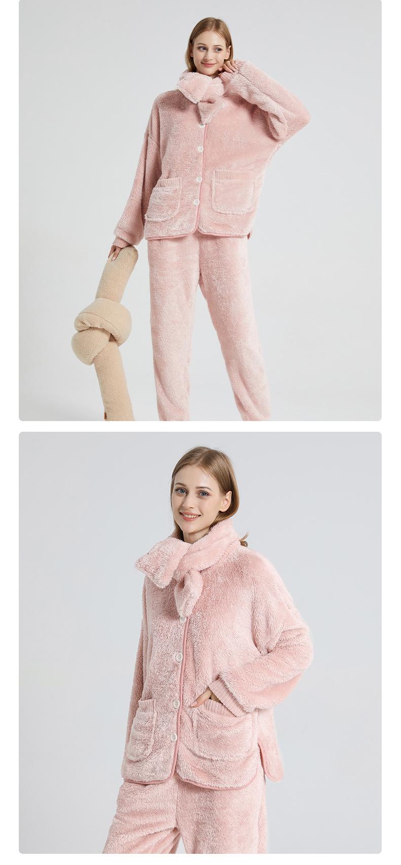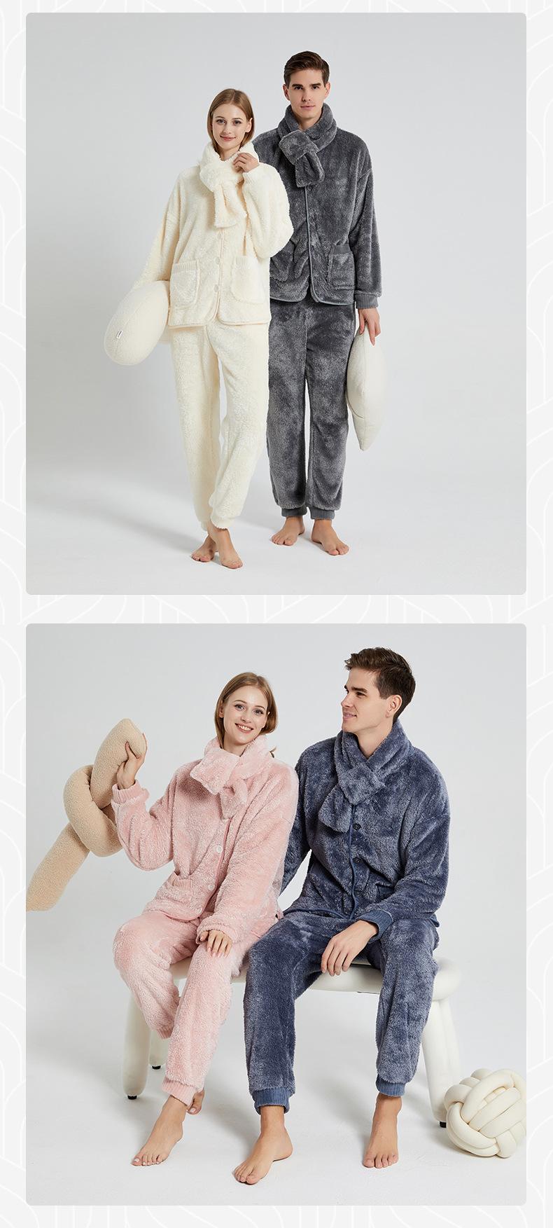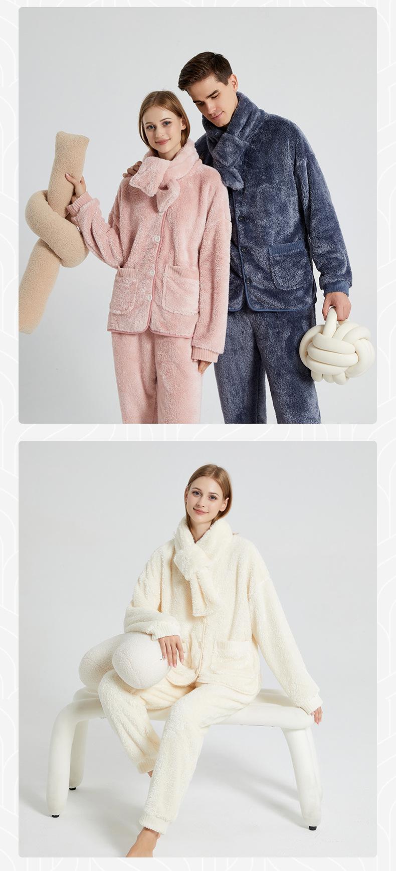 Enviar bufanda pijama de invierno forro polar coral ropa para el hogar se puede usar afuera grueso cálido pareja forro polar coral ropa para el hogar personalizada