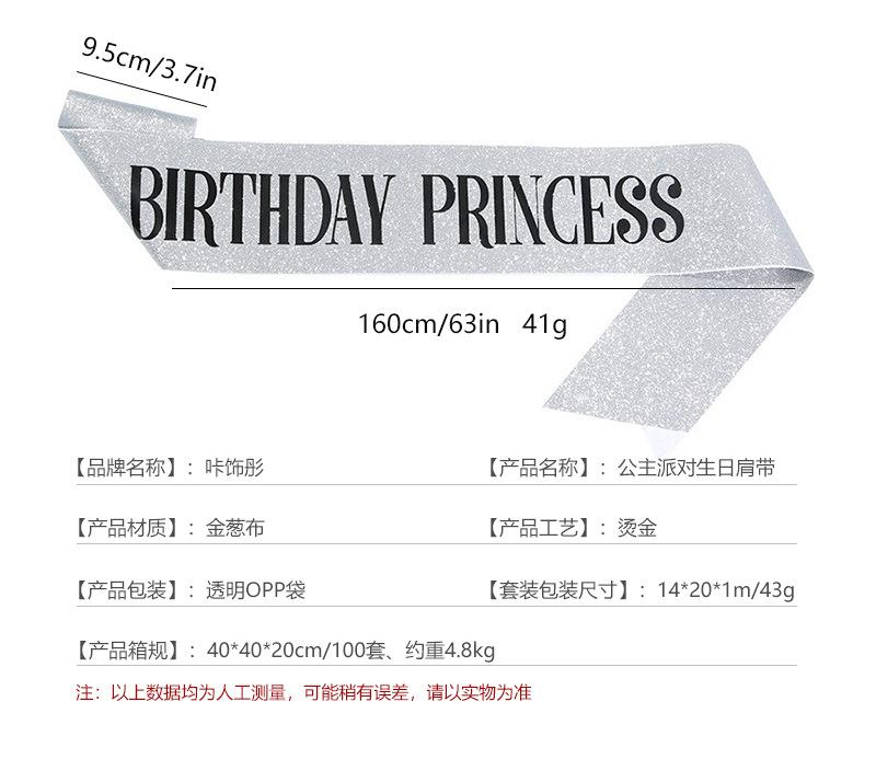 Fiesta de cumpleaños princesa de cumpleaños princesa banda de hombro cinturón de etiqueta