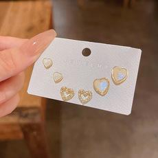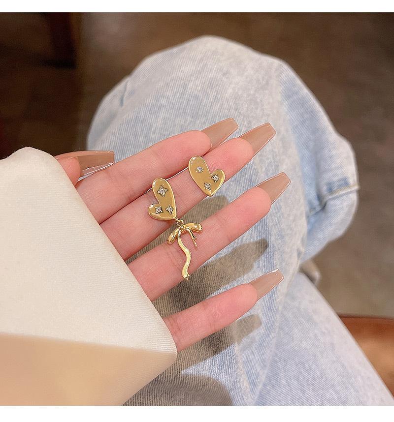 Pendientes pequeños con diseño de amor, con aguja de plata S925, temperamento simple, esmalte goteante, temperamento versátil, pequeños y frescos, estilo de celebridad de Internet.