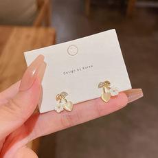 Pendientes de plata S925 con forma de ojo de gato y cereza para mujer, modernos, pequeños y frescos, con microincrustaciones, exquisitos pendientes de circón.