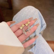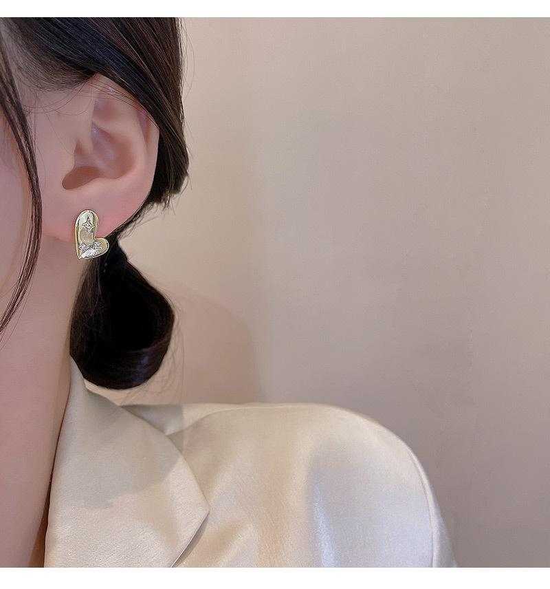 Pendientes de lujo ligeros con exquisitos diamantes de imitación de amor para mujer, pendientes de plata S925 con aguja, temperamento versátil, estilo celebridad de Internet.