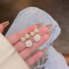 Pendientes de plata S925 con forma de hada y lazo de perla, con diseño de flor de moda para mujer, accesorios de red roja para las orejas.