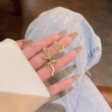 Pendientes elegantes de flor de amor con diseño de hada súper aguja de plata S925 para mujer, modernos, ligeros, de lujo, con lazo, accesorios para las orejas.