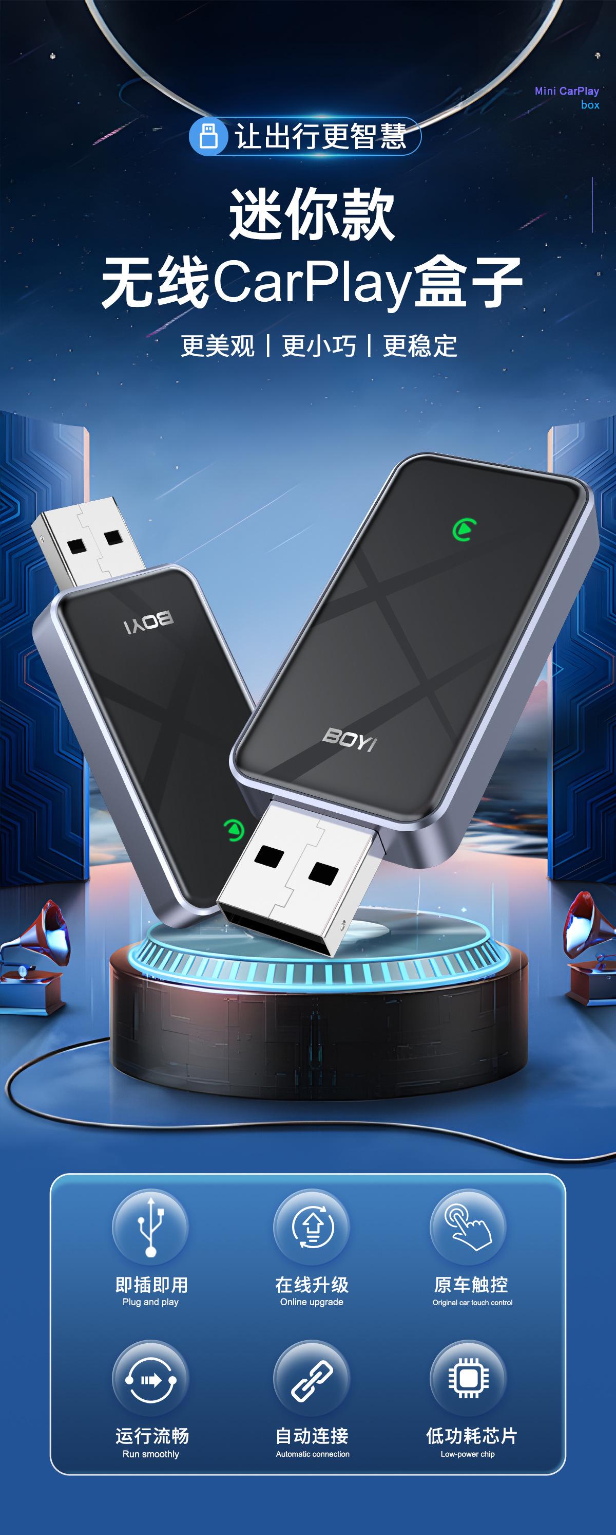 Caja Carplay USB Unidad Flash Carplay Cableado a Inalámbrico Dos en Uno Interconexión Android Car-Machine Caja Inteligente