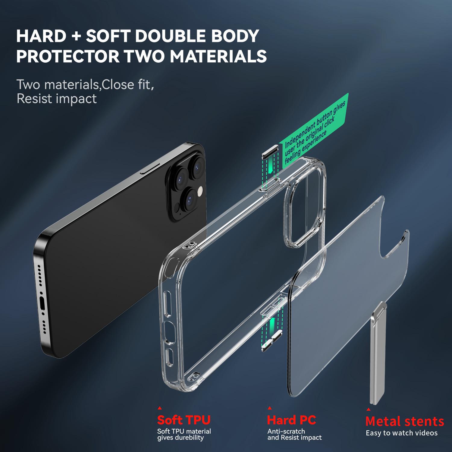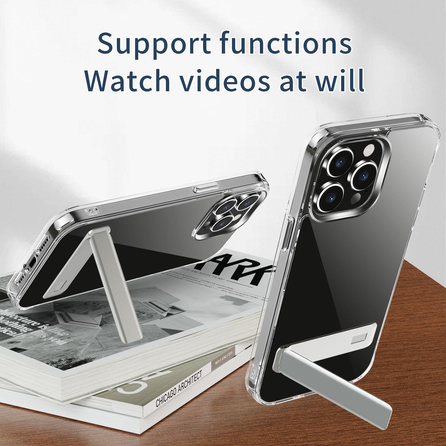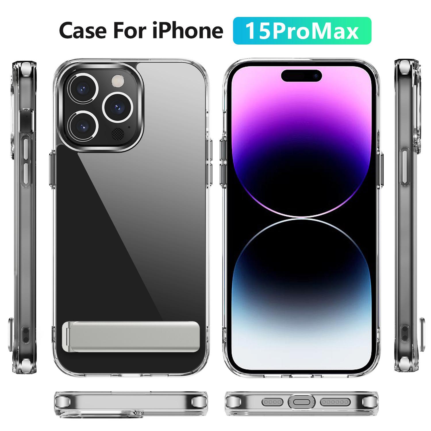 Adecuado para Apple 15Promax Funda Transparente para Teléfono Móvil con Soporte Iphone14 Botón Electrochapado Cubierta Protectora Anticaídas Transfronterizo