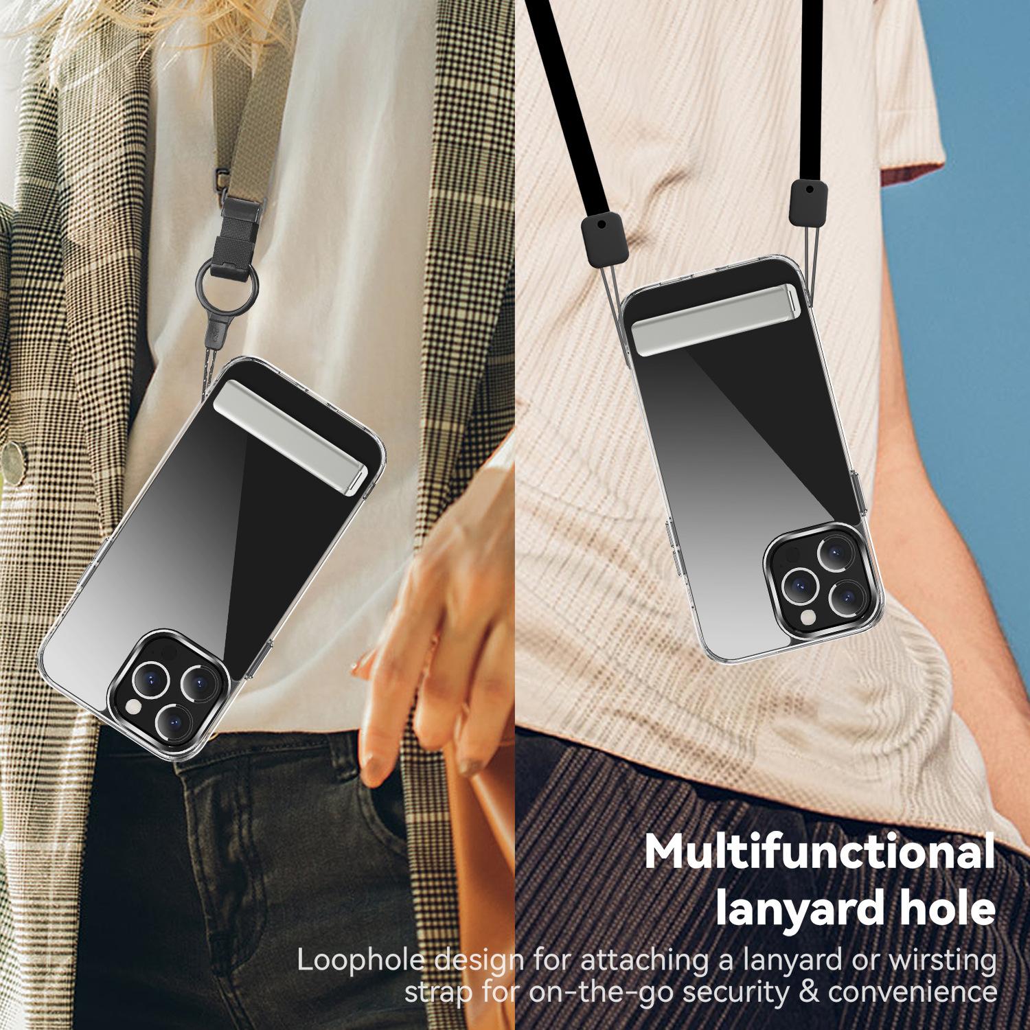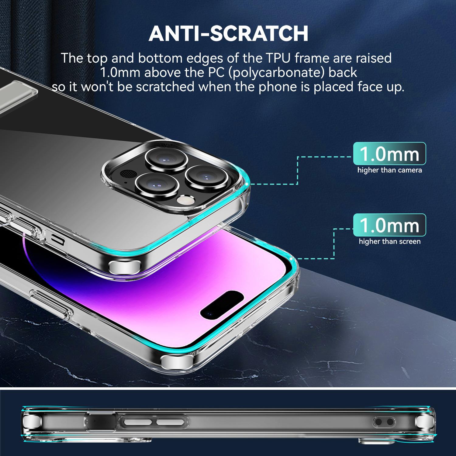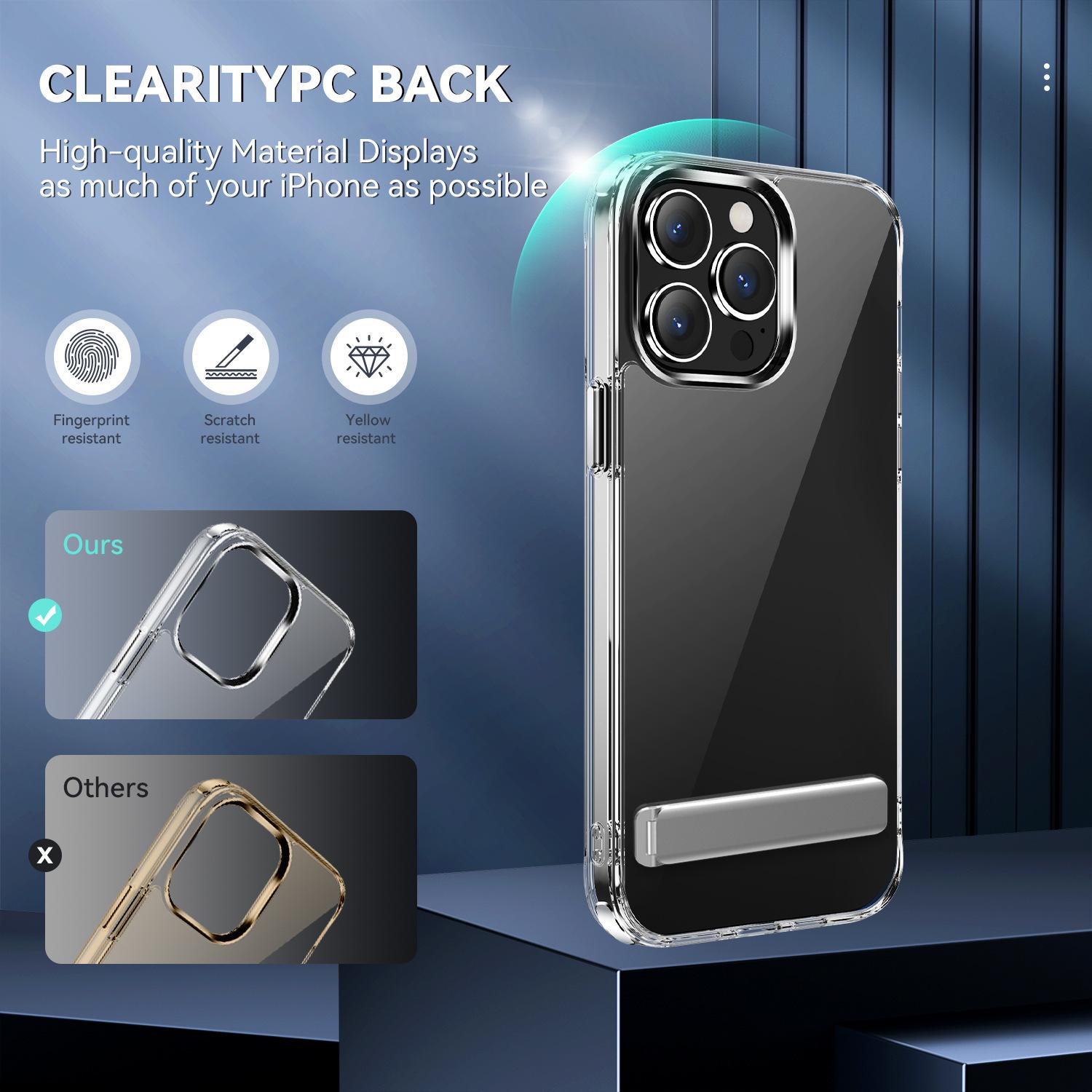 Adecuado para Apple 15Promax Funda Transparente para Teléfono Móvil con Soporte Iphone14 Botón Electrochapado Cubierta Protectora Anticaídas Transfronterizo