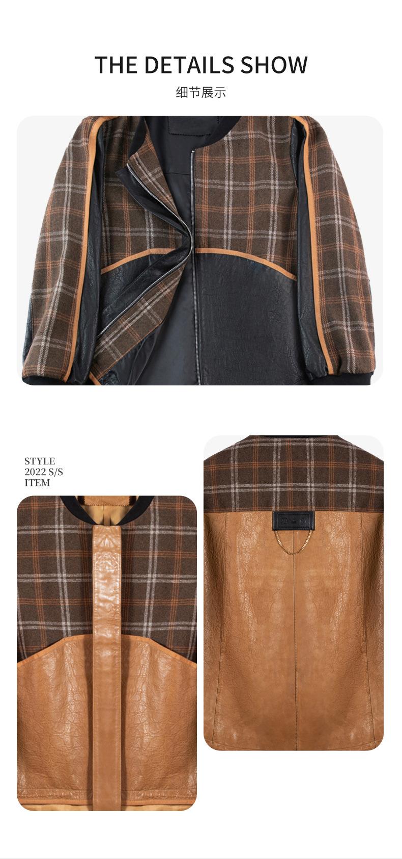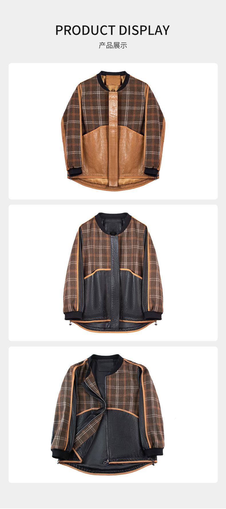 Abrigo de Invierno y Otoño de Cuero Genuino Haining para Mujer, Estilo Béisbol con Parches de Piel de Oveja y Cachemira, Corto, de Cuello Redondo con Bolsillos