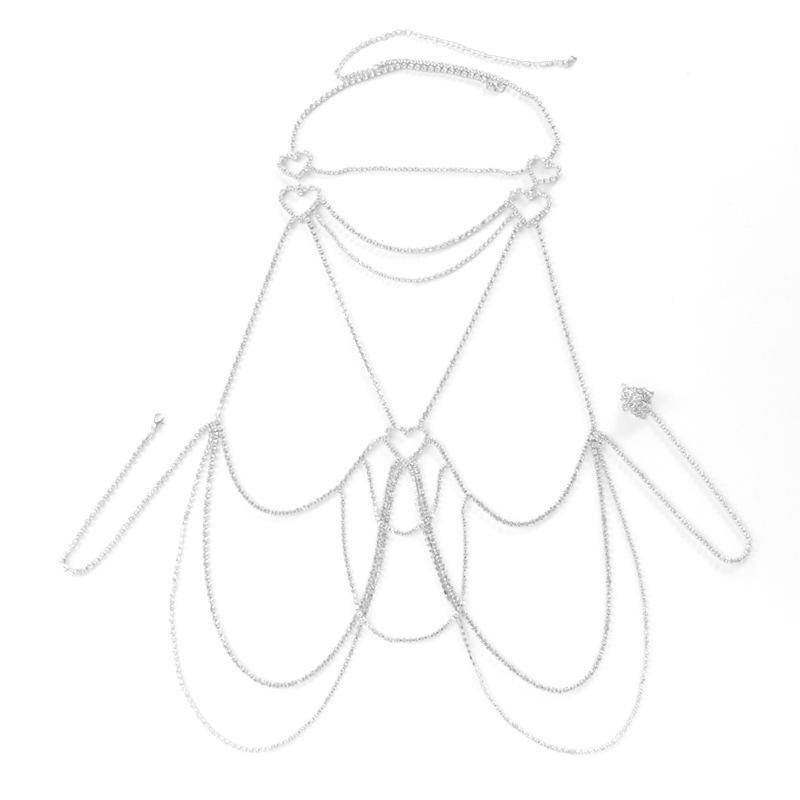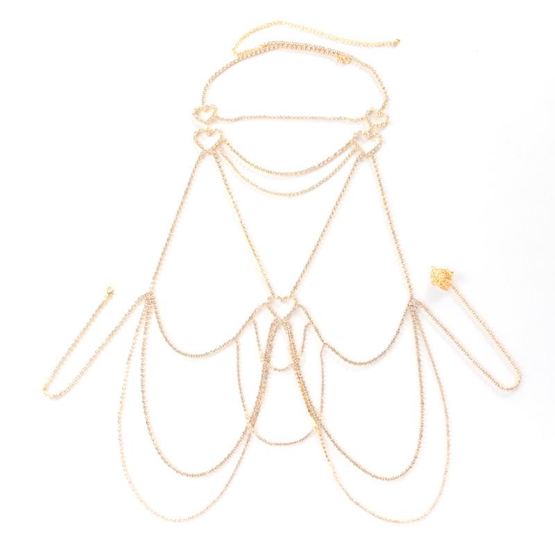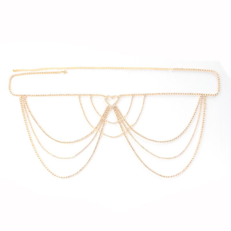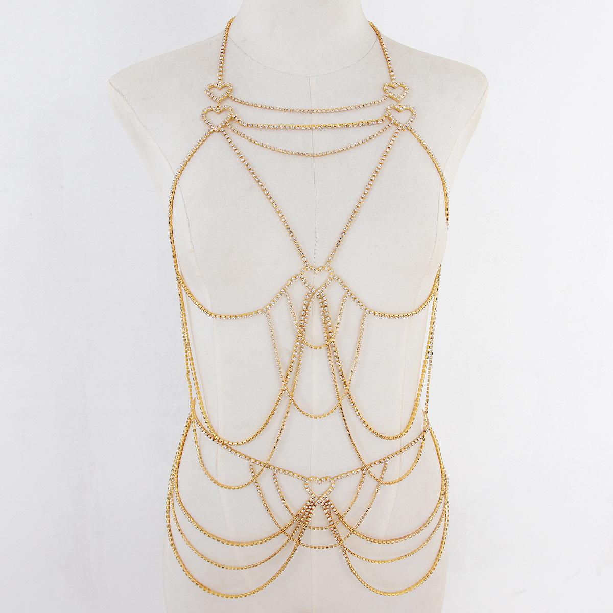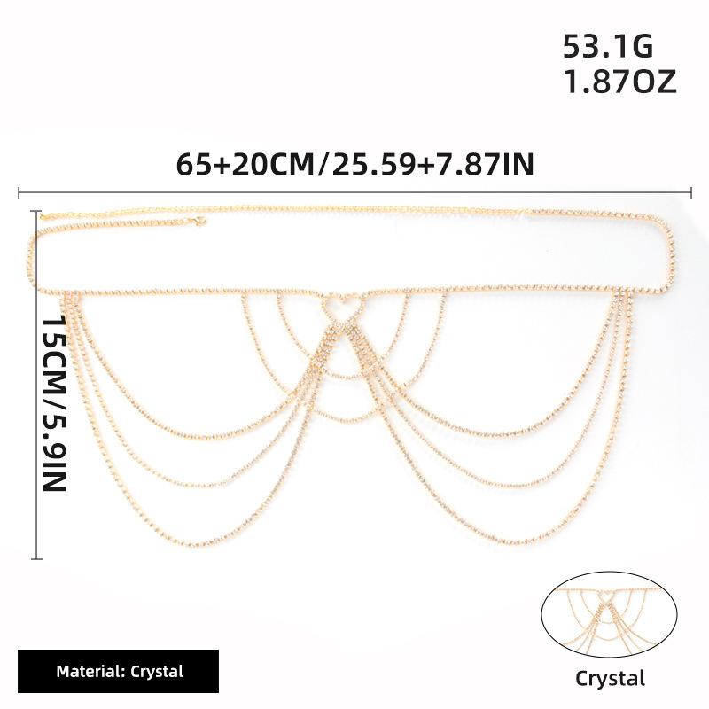 Cadena Corporal Sexy para Mujer Europea y Americana Transfronteriza Moda Caliente Cadena Multicapa de Pedrería Cadena de Pecho para Bikini