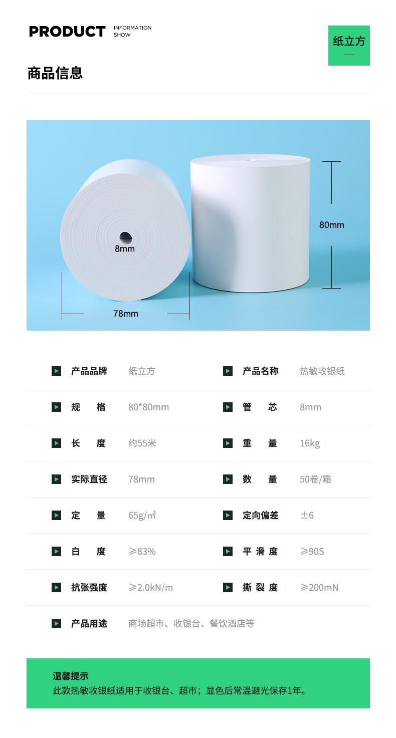 Papel térmico sin matriz, papel para caja registradora, papel de impresión 80x80, papel térmico 8080 para caja registradora, papel de impresión para llevar 80*80