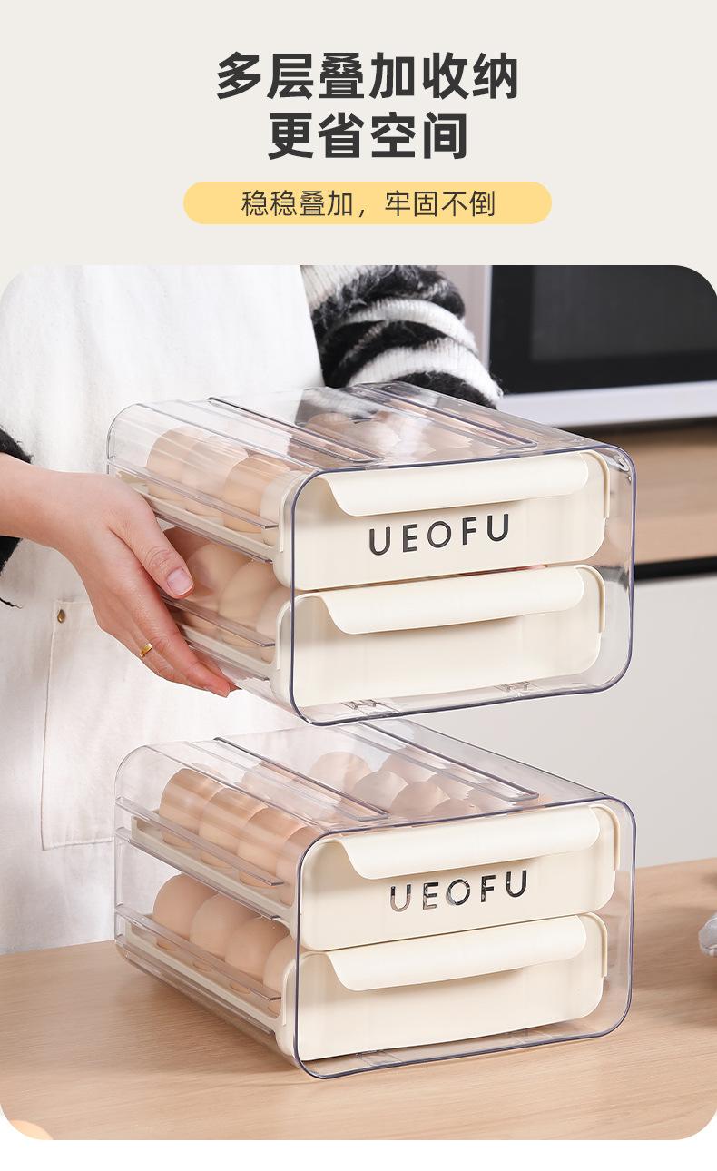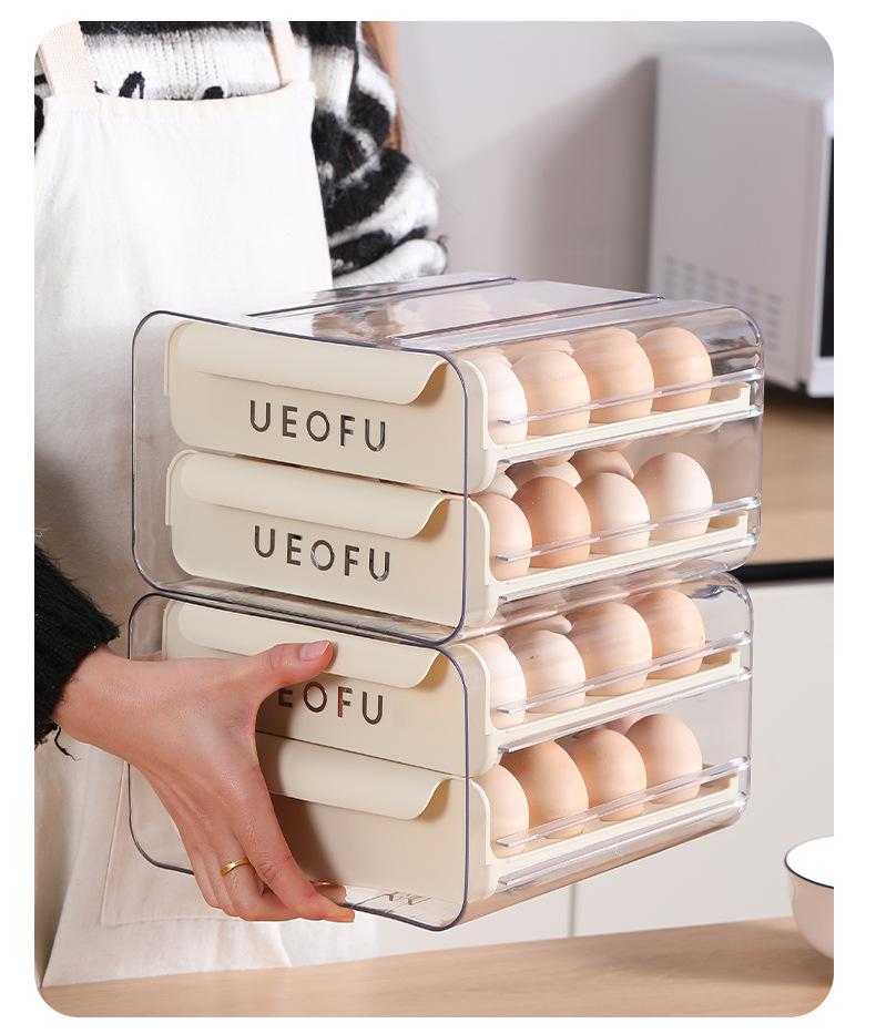 Caja de Almacenamiento de Huevos Transfronteriza Cocina Refrigerador Plástico Transparente Cajón de Doble Capa Caja para Huevos de Corral y Huevos de Pato Caja de Conservación