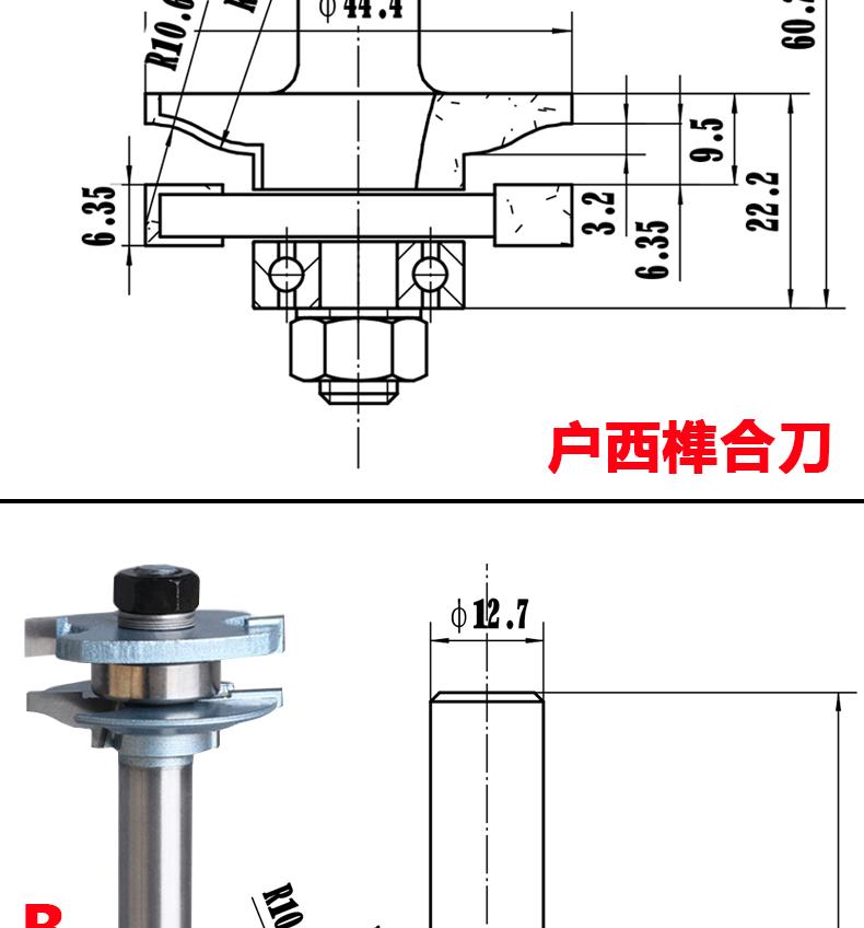 Hu Hao 1/2 Mango Fresa para Carpintería de Doble Cara para Hogar Oeste Espiga y Mortaja Cuchillo Panel de Marco de Puerta Juego de Cuchillos para Puerta de Madera