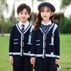 Conjunto de tres piezas para estudiantes de primaria, ropa de jardín de infantes, uniforme escolar de otoño e invierno, uniforme escolar para niños, uniforme de clase, suéter de punto de estilo británico.