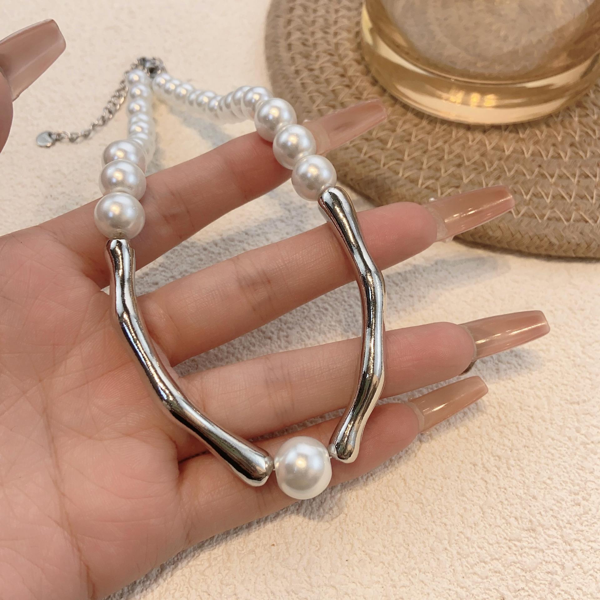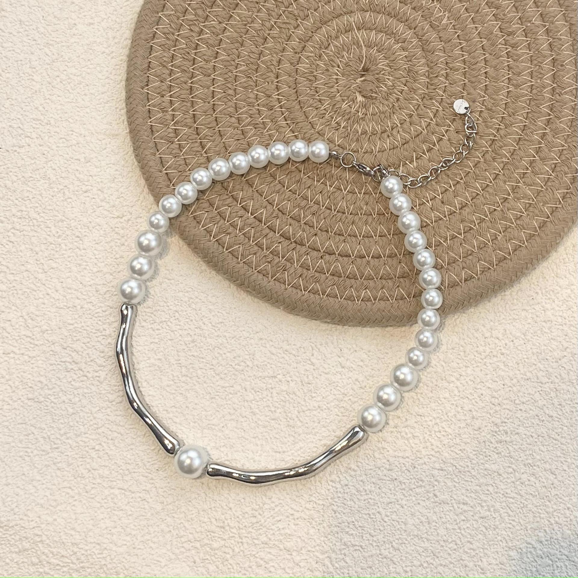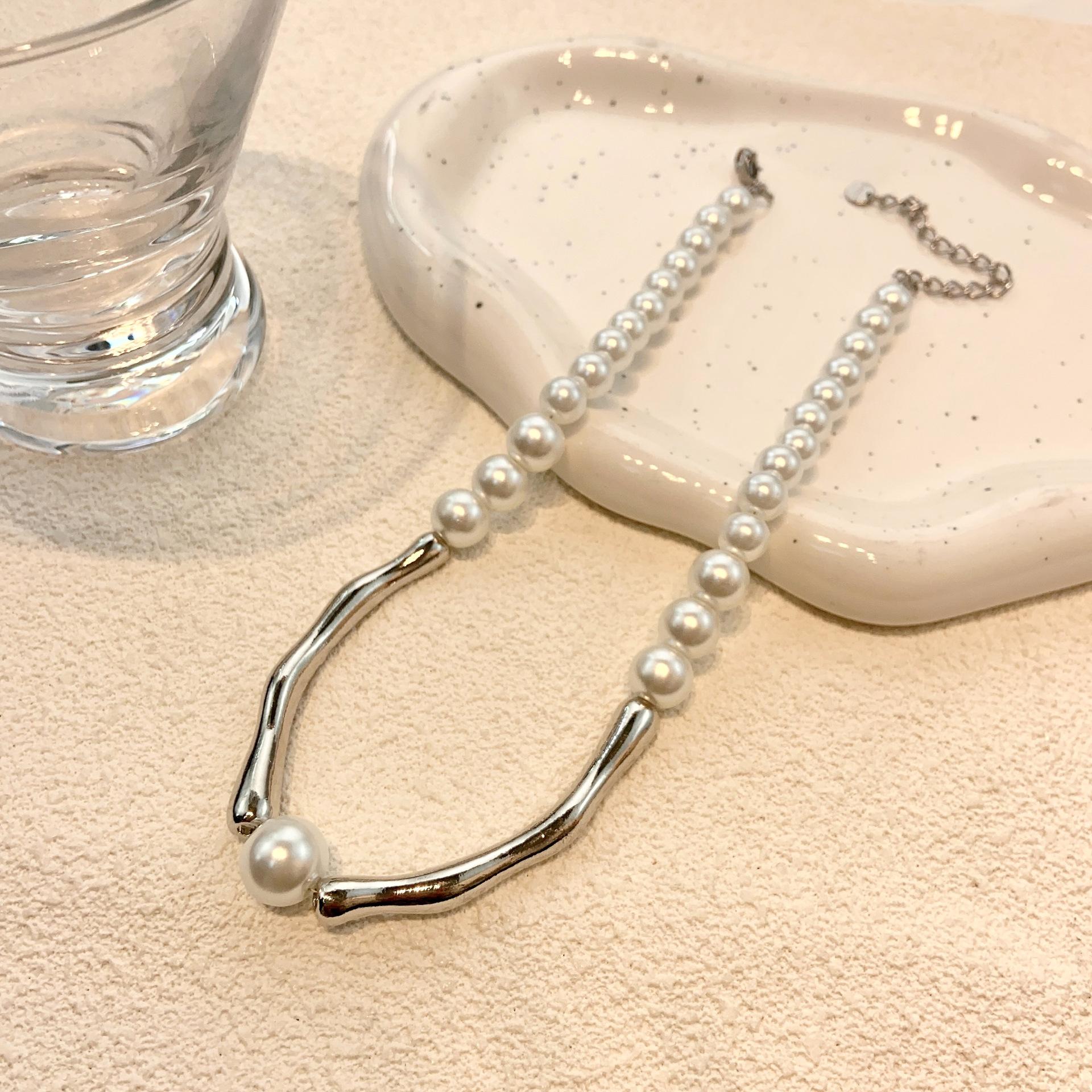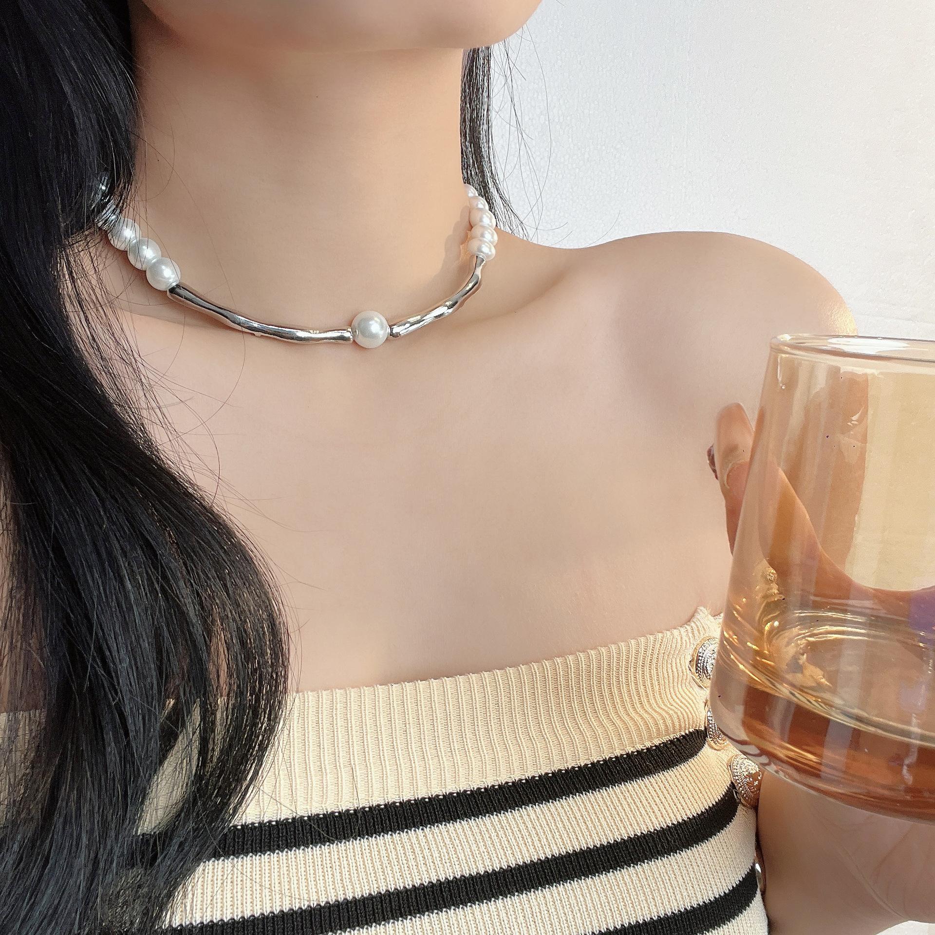 Collar de perlas con costuras curvas personalizado, diseño para mujer, collar combinable, ligero, de lujo, accesorios de cadena de clavícula de alta calidad, nuevo