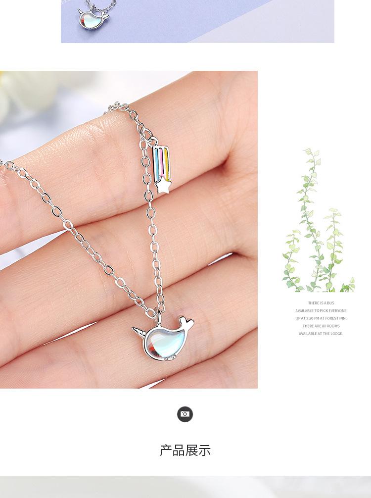 Lindo Collar de Ballena Cadena Corta para Clavícula para Mujer Elegante Ins Simple Estudiante Colorido Arcoíris Collar con Colgante de Celebridad Cibernética