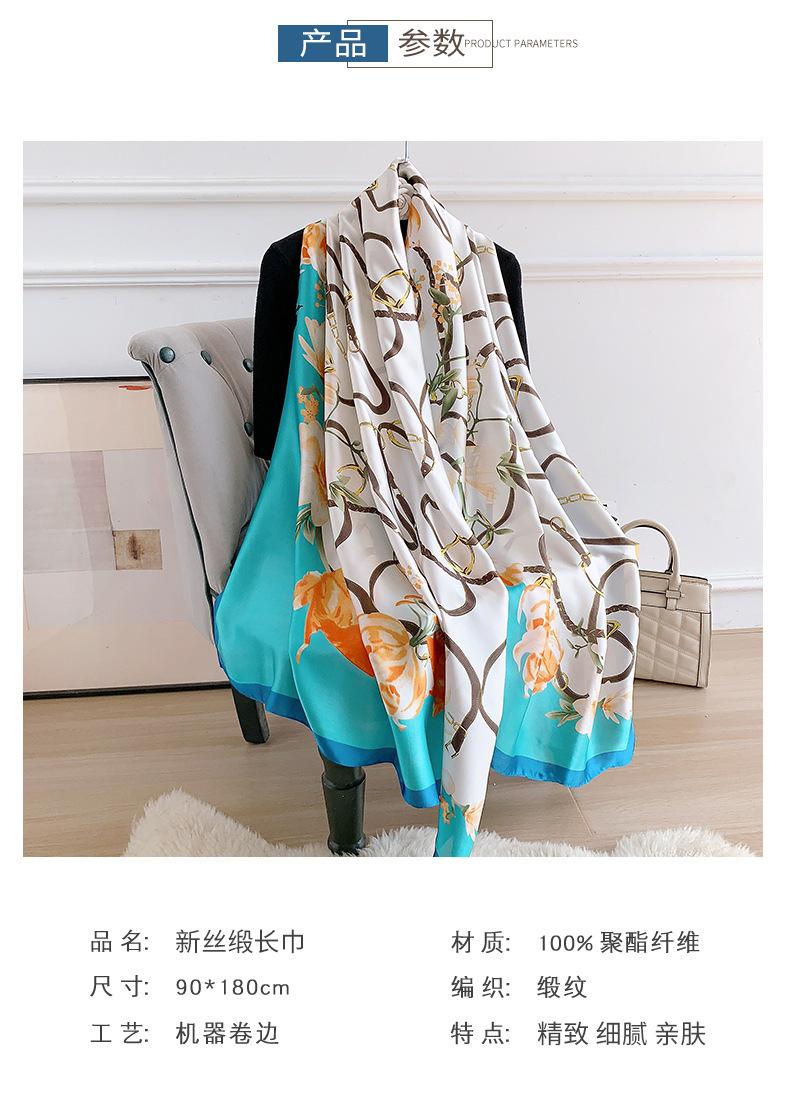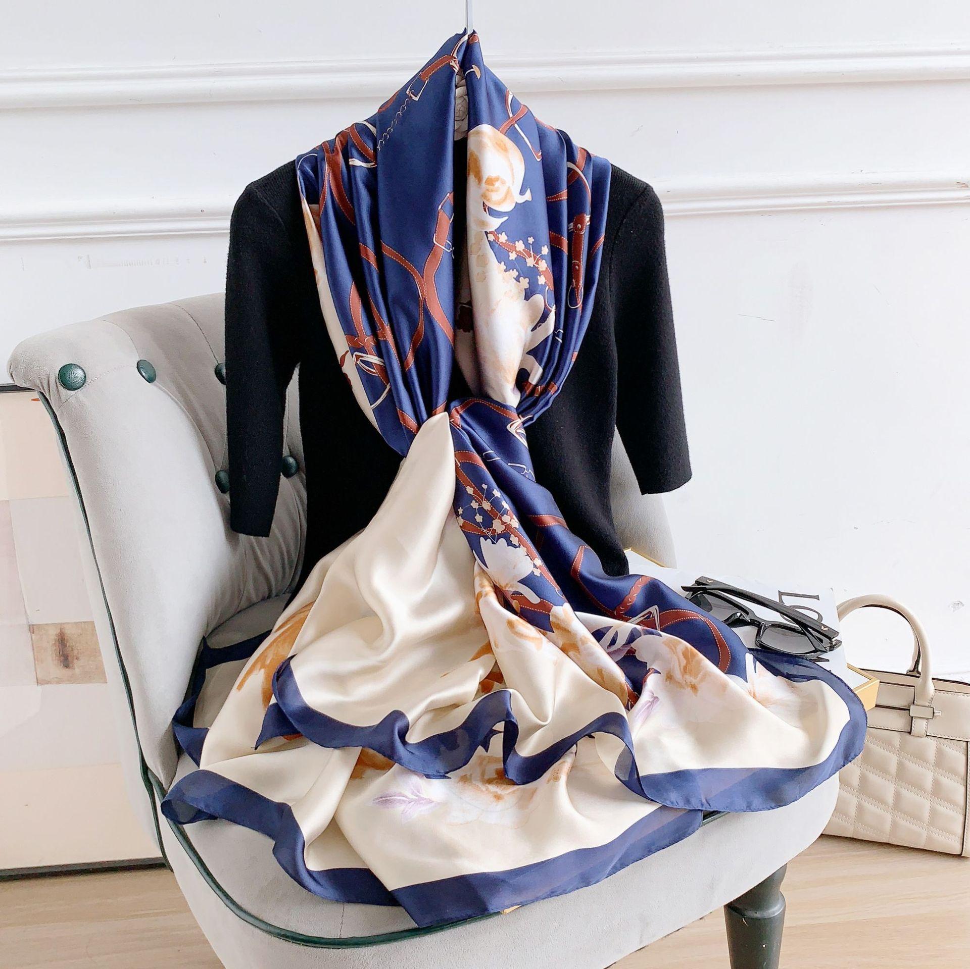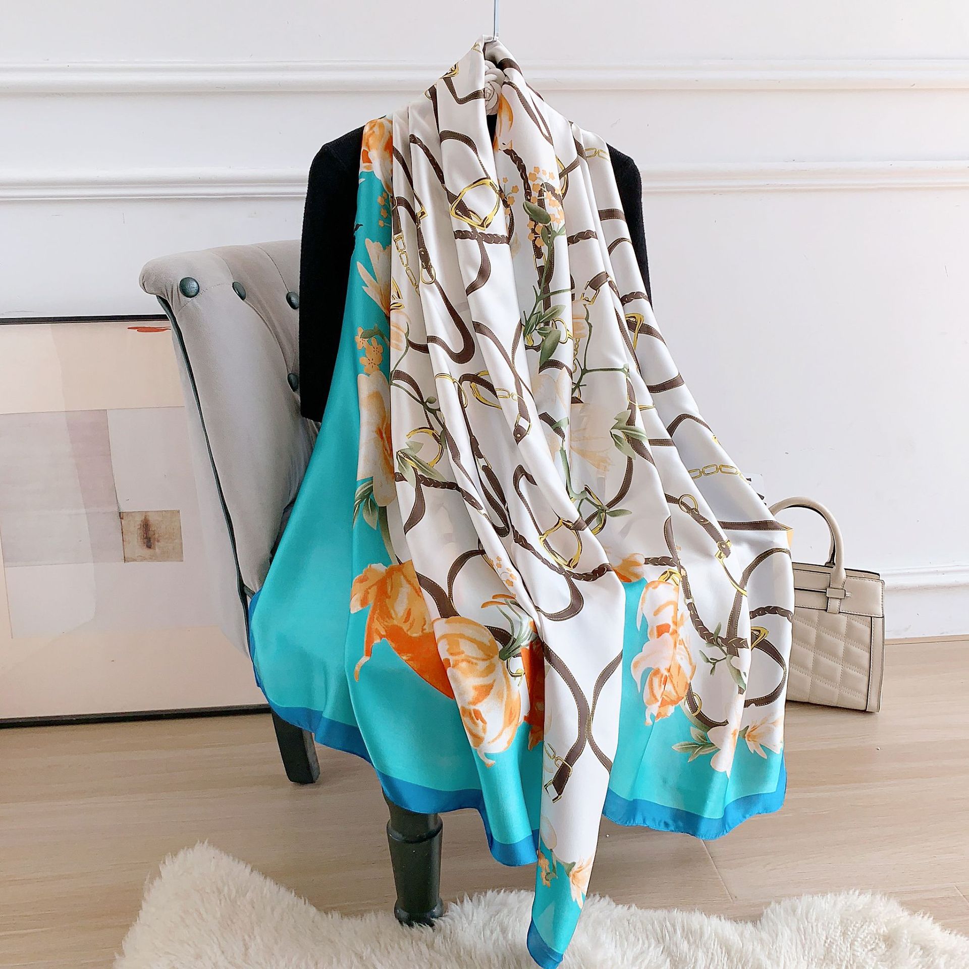 Bufanda Estampada de Seda Imitación Nueva para Mujer, Bufanda de Cadena Moderna y Versátil, Protección Solar Decorativa, Toalla de Playa de Tamaño Grande en Stock