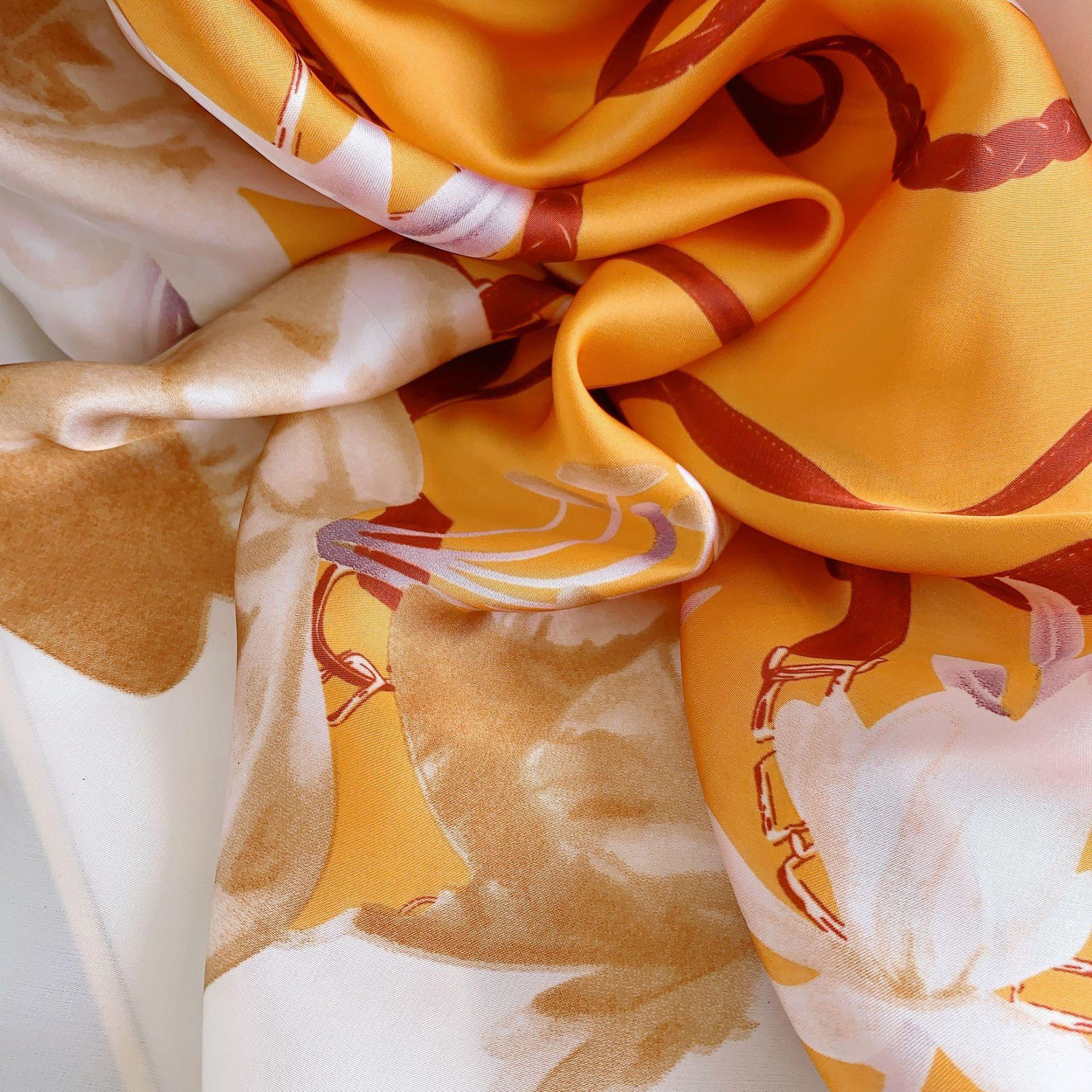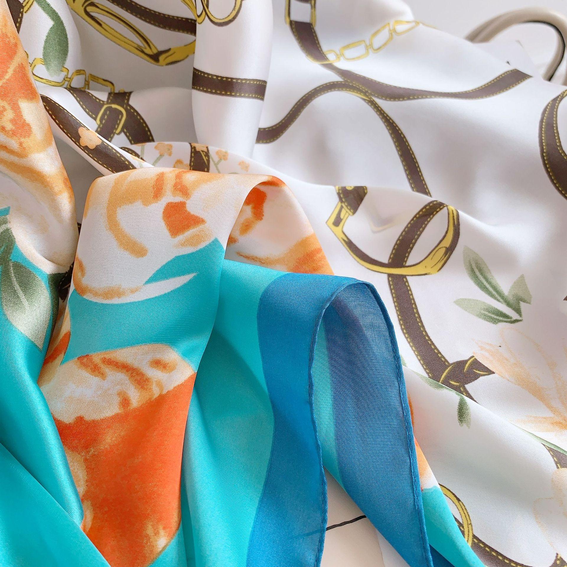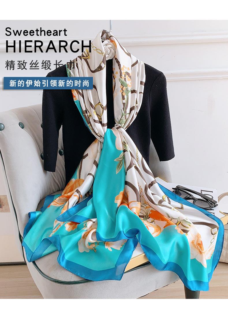 Bufanda Estampada de Seda Imitación Nueva para Mujer, Bufanda de Cadena Moderna y Versátil, Protección Solar Decorativa, Toalla de Playa de Tamaño Grande en Stock