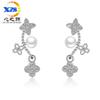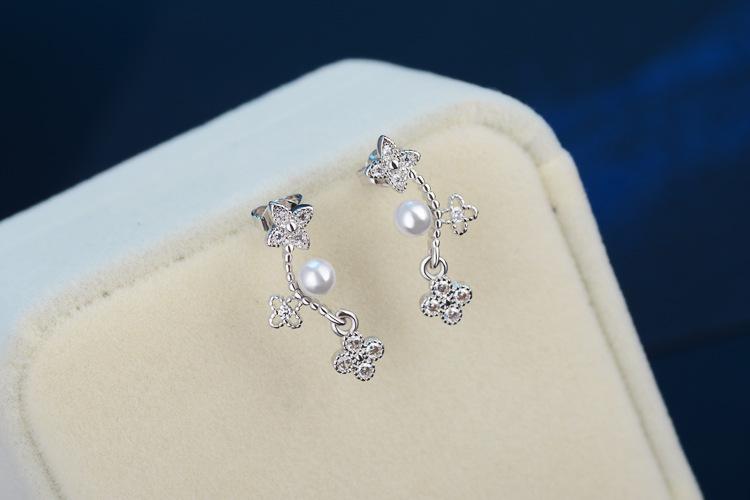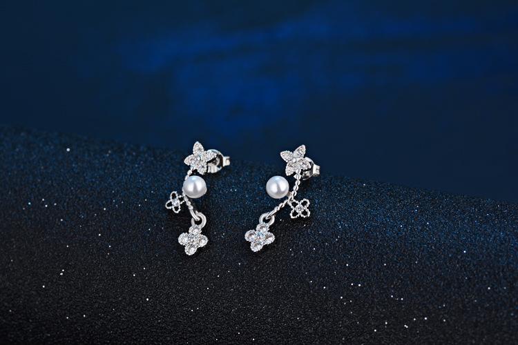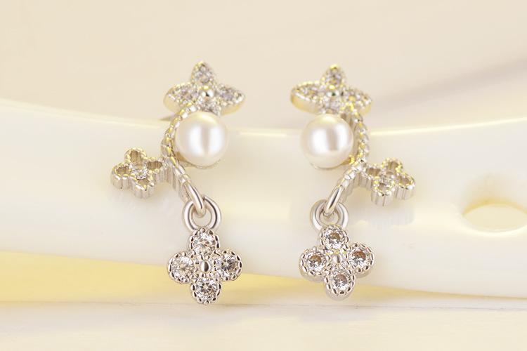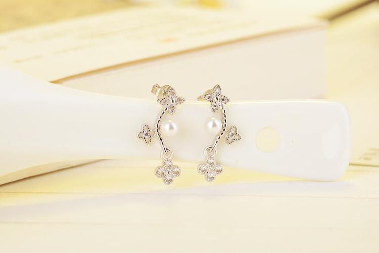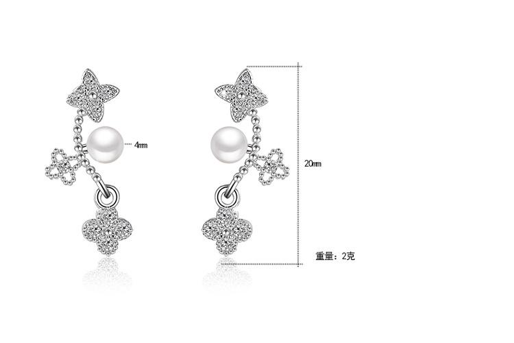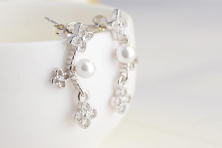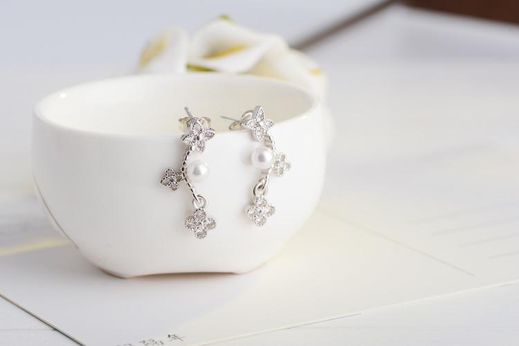 Pendientes largos de diamantes dulces con temperamento japonés de Corea del Sur, pendientes de perlas de trébol de cuatro hojas, pendientes al por mayor