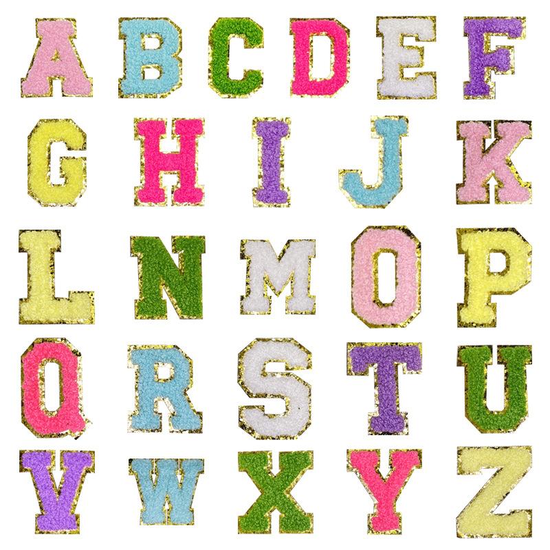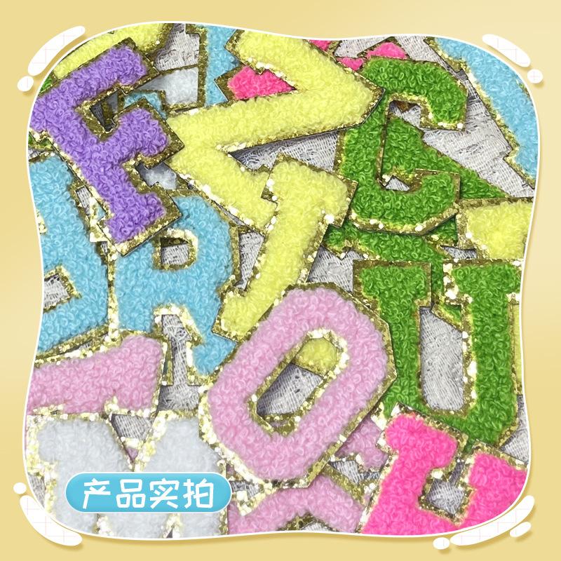 Letras Bordadas de Toalla Coloridas Autoadhesivas Insignia para Ropa Hogar Bordado a Máquina Flor Etiqueta Parche Bordado Parche Creativo