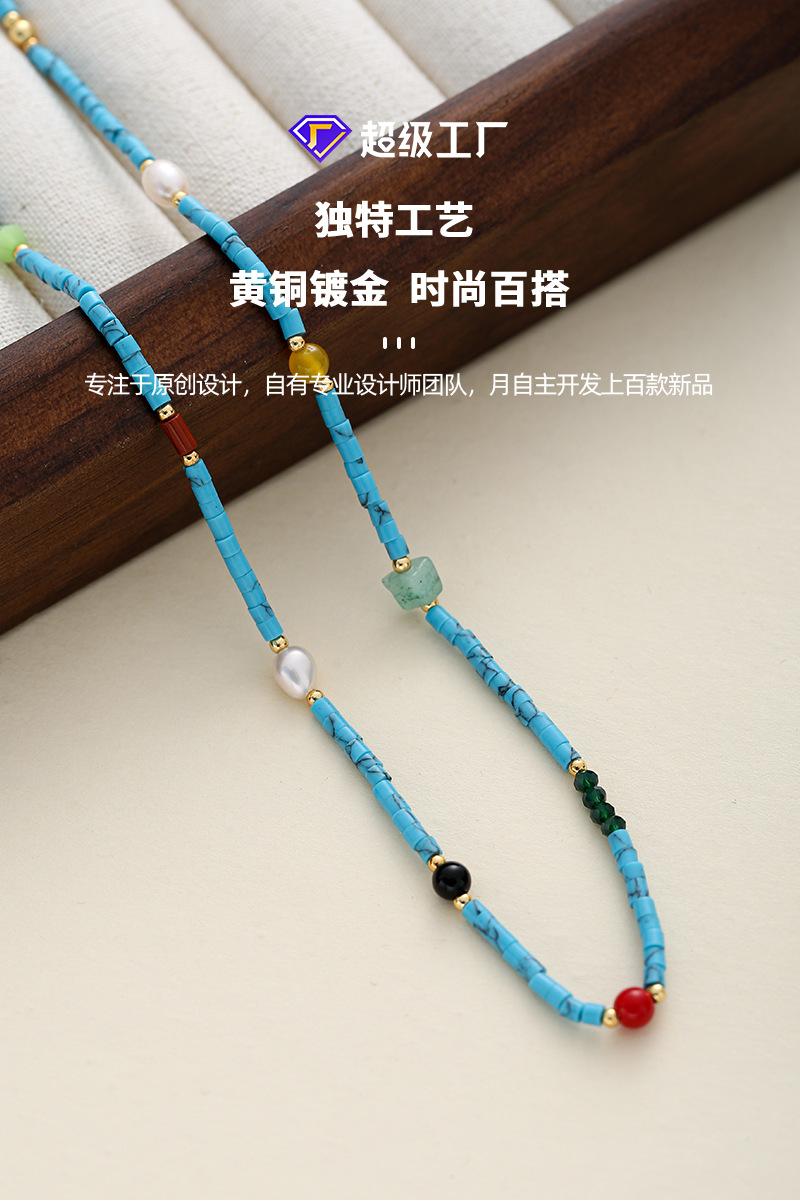 Collar de cuentas de piedra natural de colores de moda europea y americana, collar de perlas naturales simple con nicho personalizado, collar para mujer que combina con todo