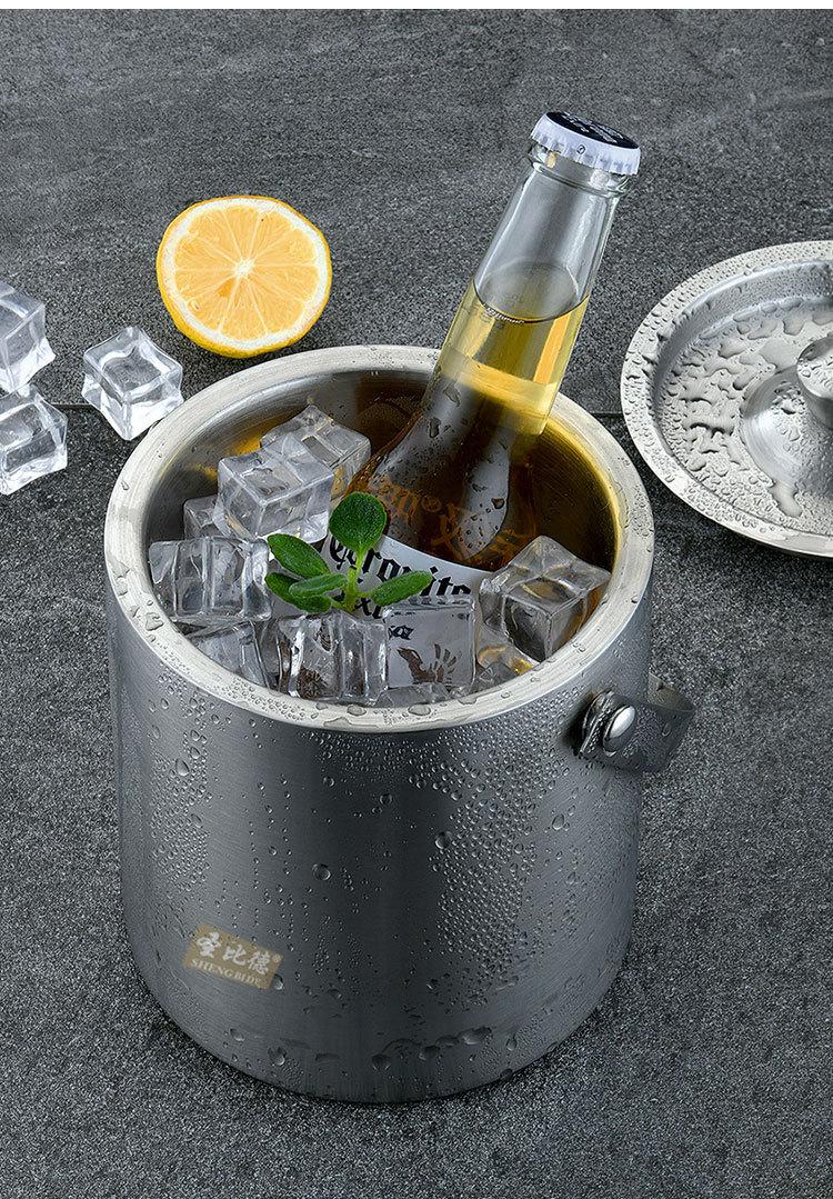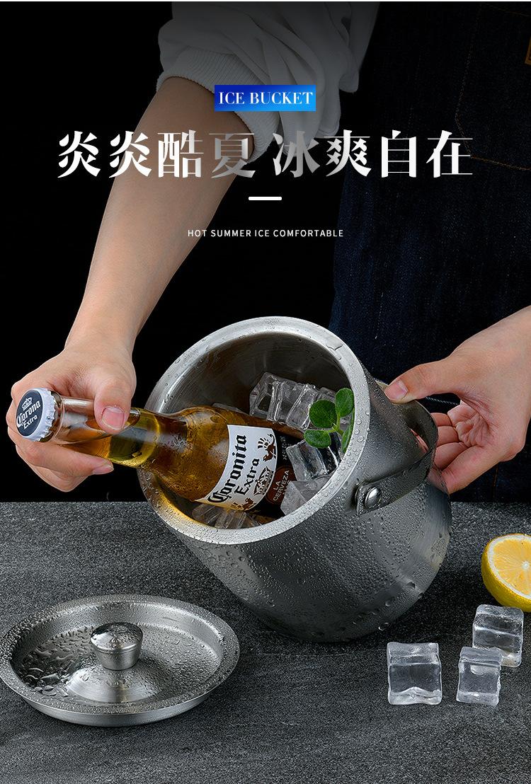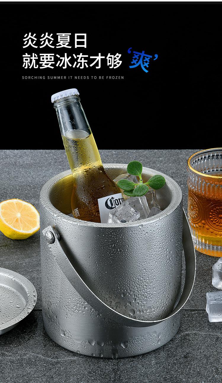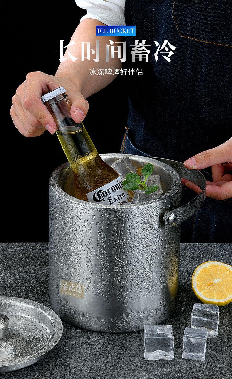 Cubo de hielo de acero inoxidable 304 de Amazon, cubo para champán, cubo para cerveza con aislamiento para exteriores, doble barra recta, suministros