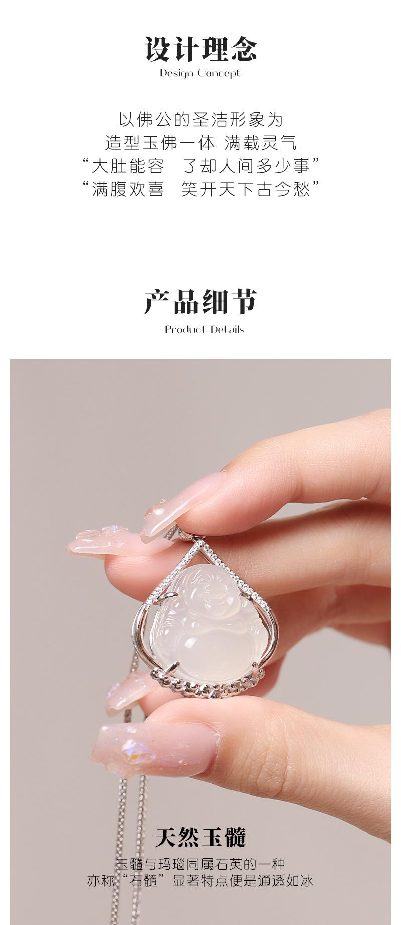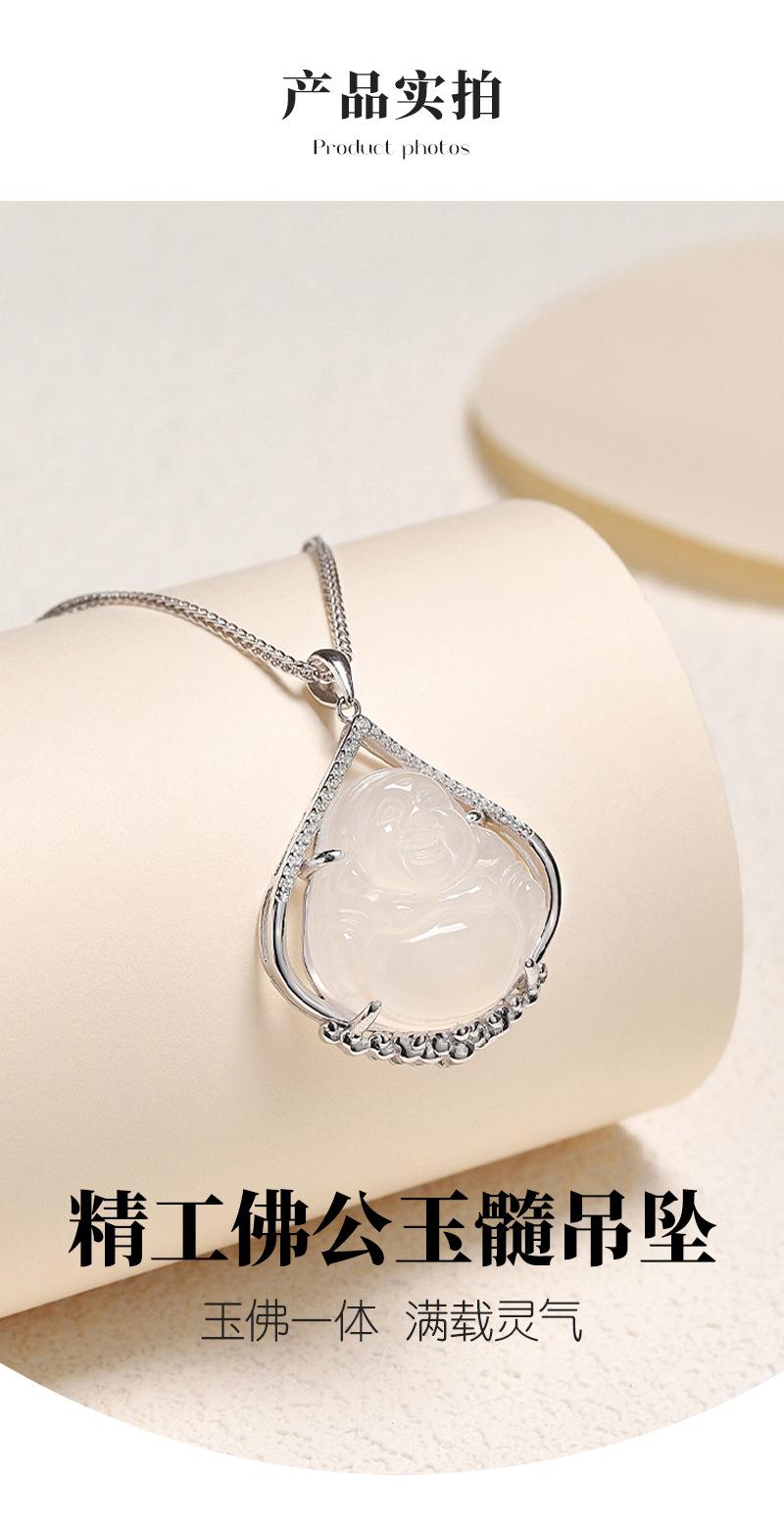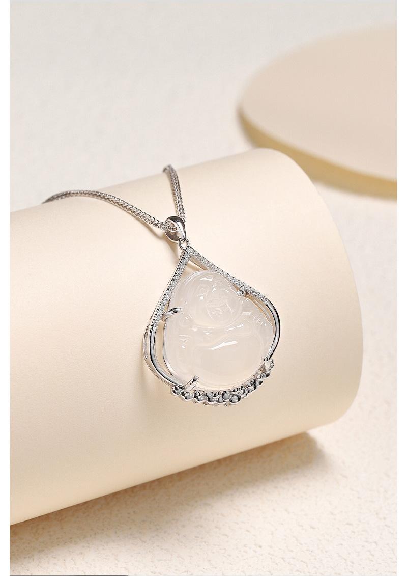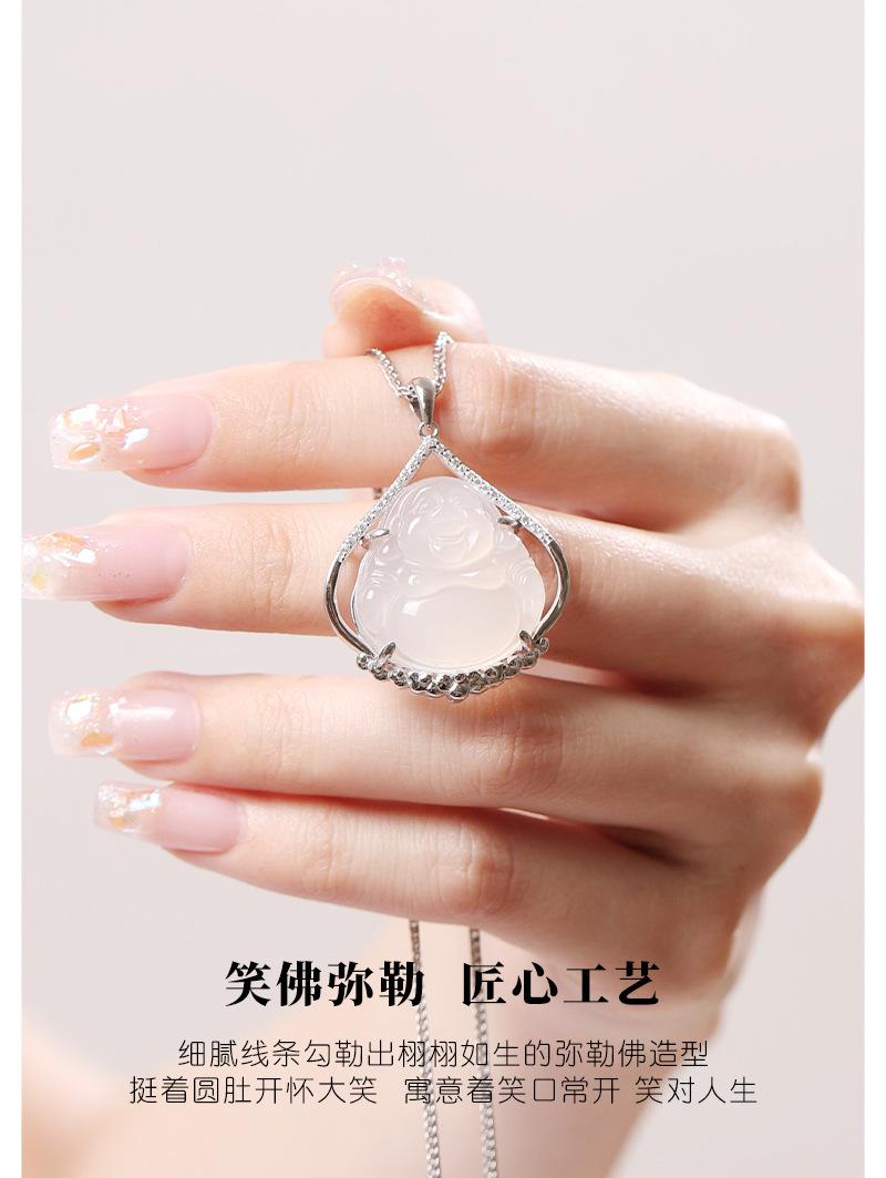 Colgante de calcedonia de hielo de plata esterlina S925 de Buda, cadena de clavícula de Buda Maitreya de nicho de moda nacional femenina, collar de Buda de gran barriga, regalo