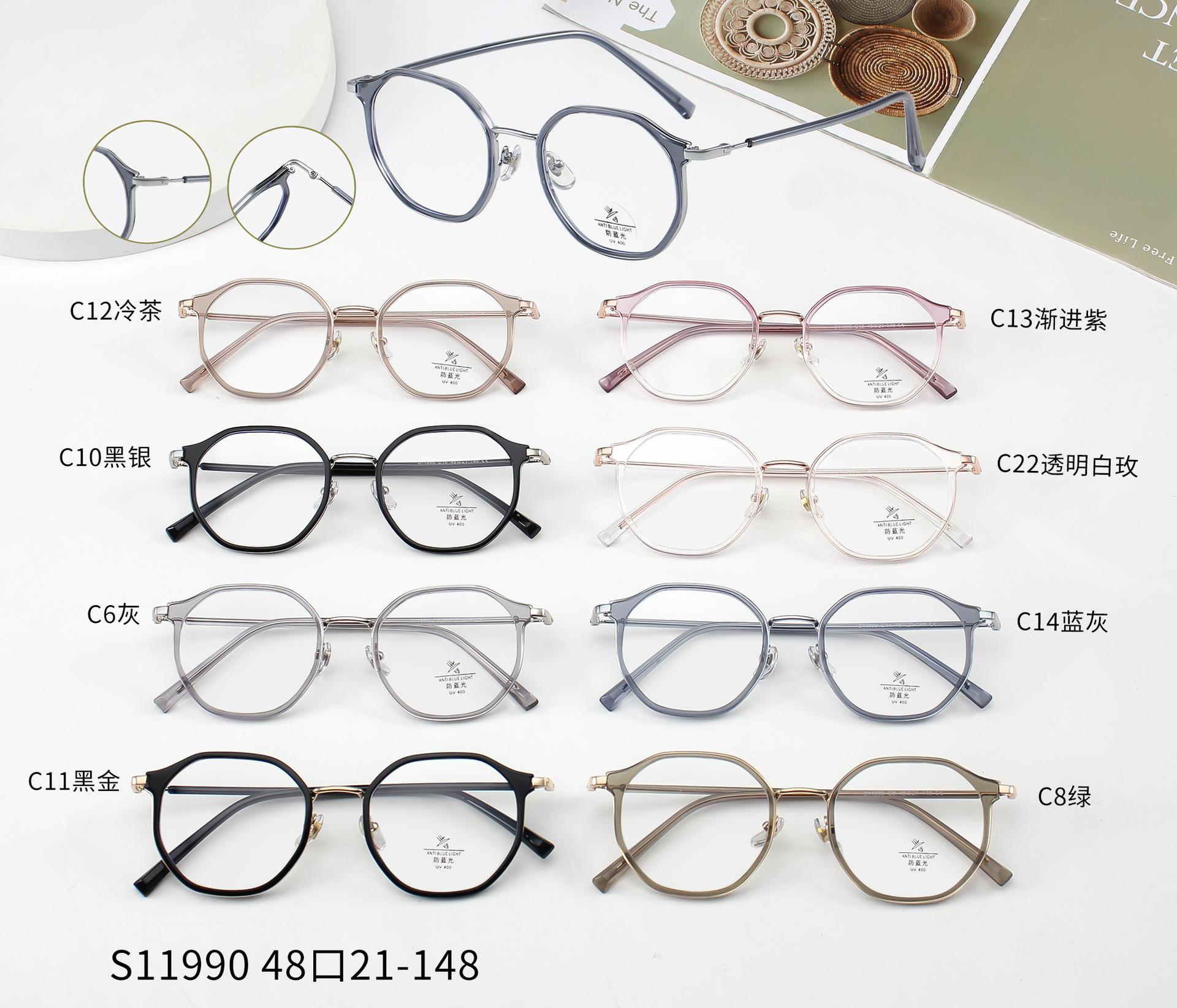 S11990 gafas para miopía estilo campus fresco para hombres y mujeres anti luz azul gafas lisas montura de metal de alta calidad venta al por mayor