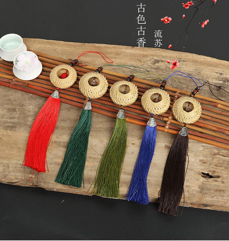 Compra Joyería de estilo antiguo hecha a mano con tejido de bambú, accesorios Hanfu, abanico clásico chino con orejas colgantes, abanico plegable de estilo antiguo, abanico redondo, accesorios con borlas al por mayor en Joom.pro