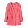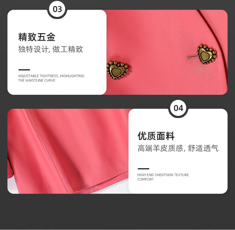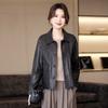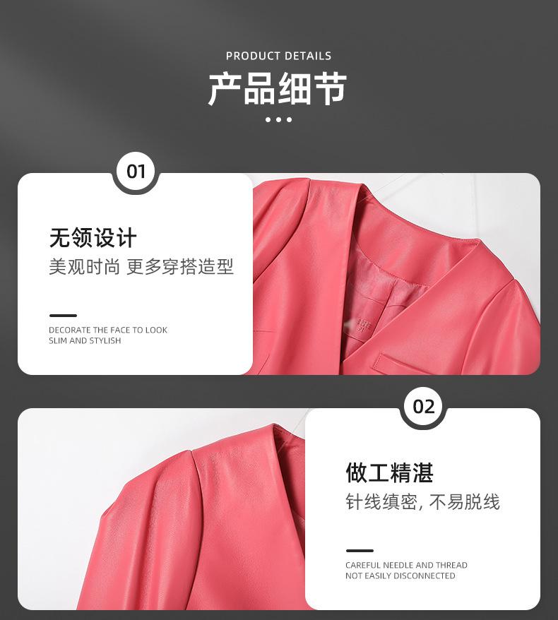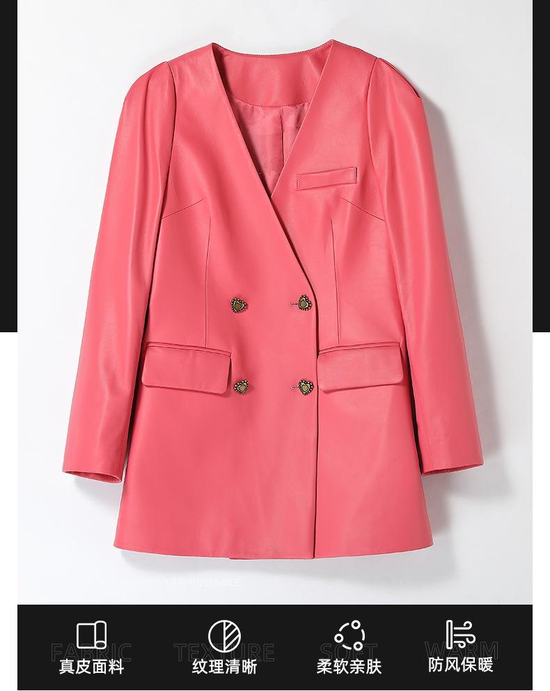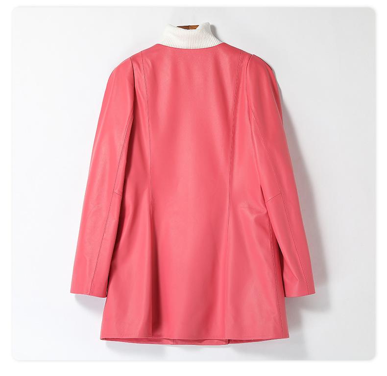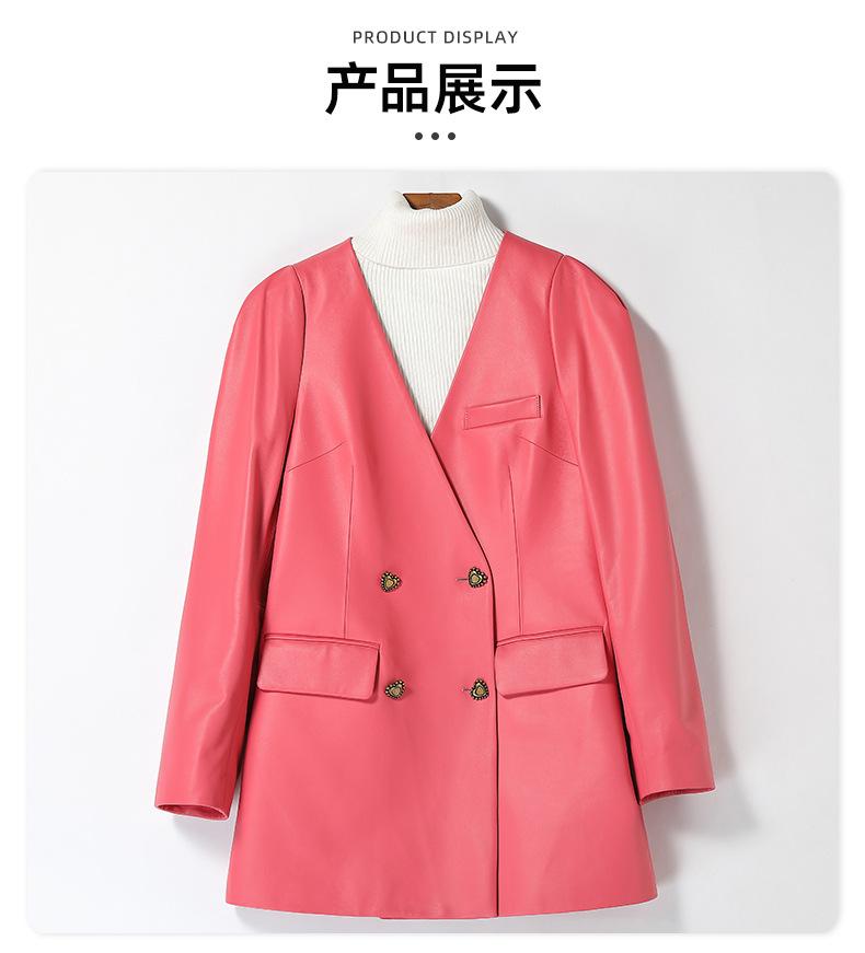 Haining Otoño e Invierno Chaqueta de Cuero Genuino Chaqueta Traje Largo Medio Cuello en V Europeo y Americano Cuero Chaqueta de Doble Botonadura Personalización