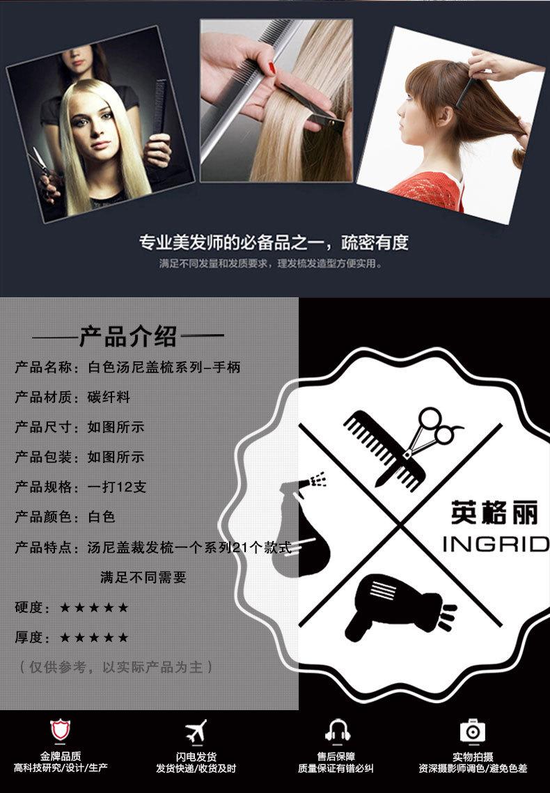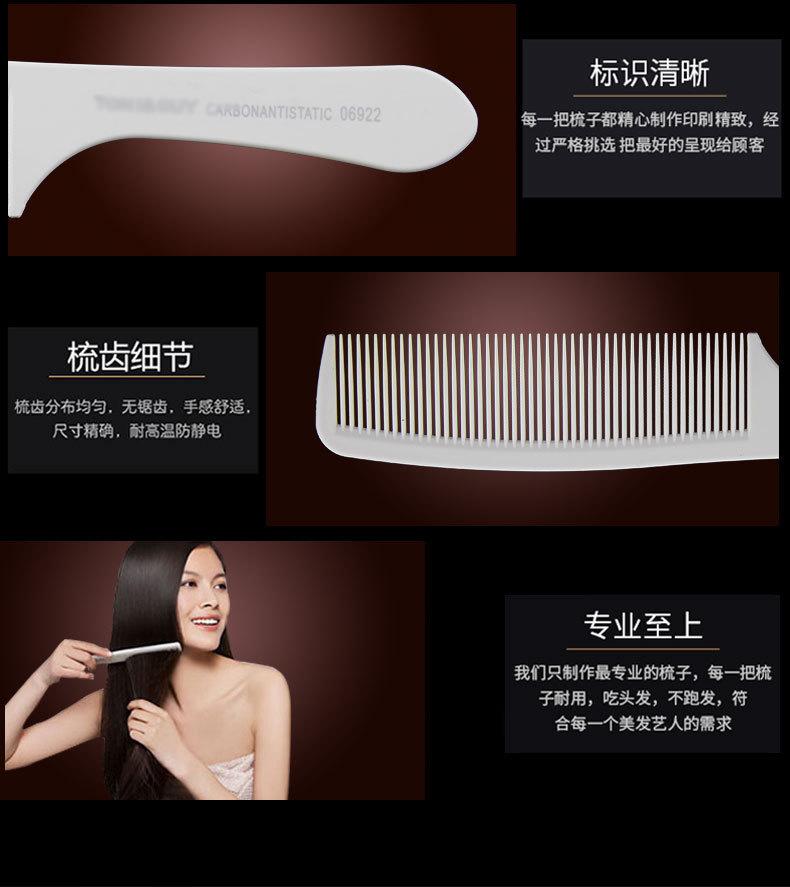 Peine antiestático para cortar el pelo Ingrid, color blanco, para peluquería Tony.