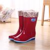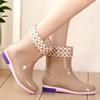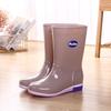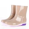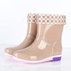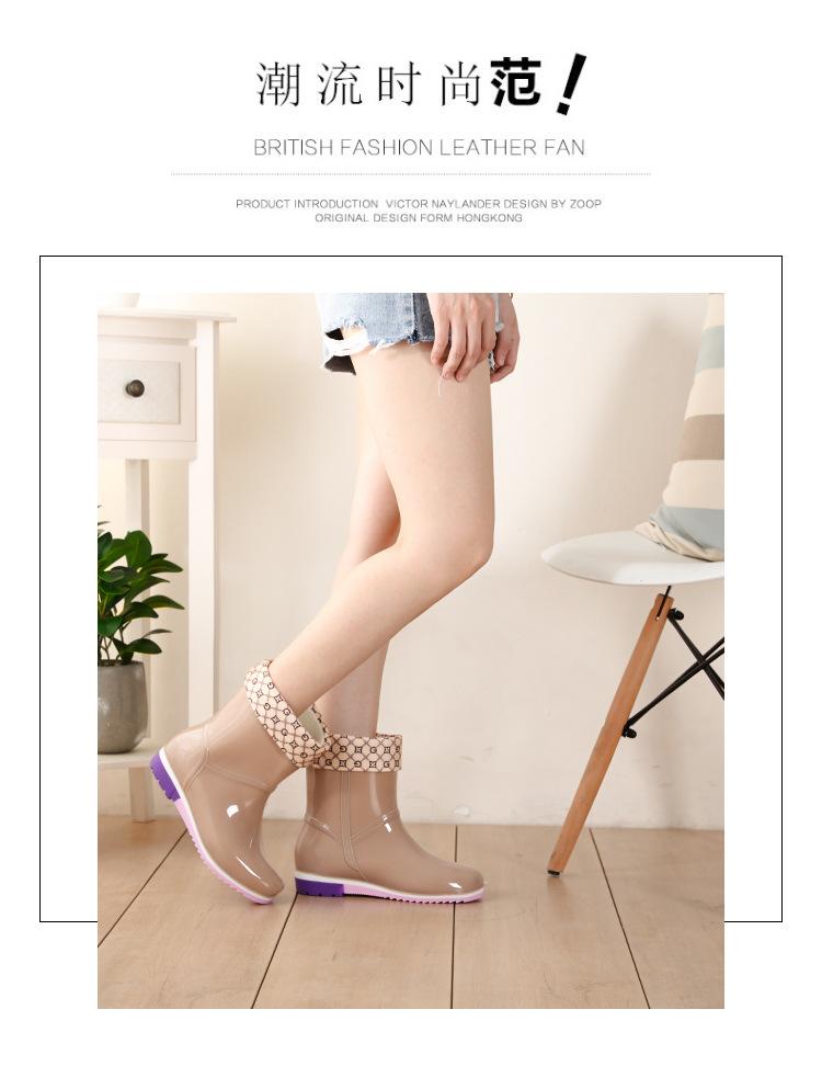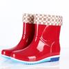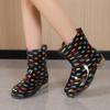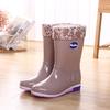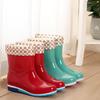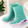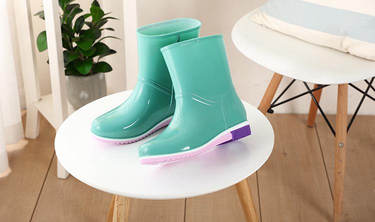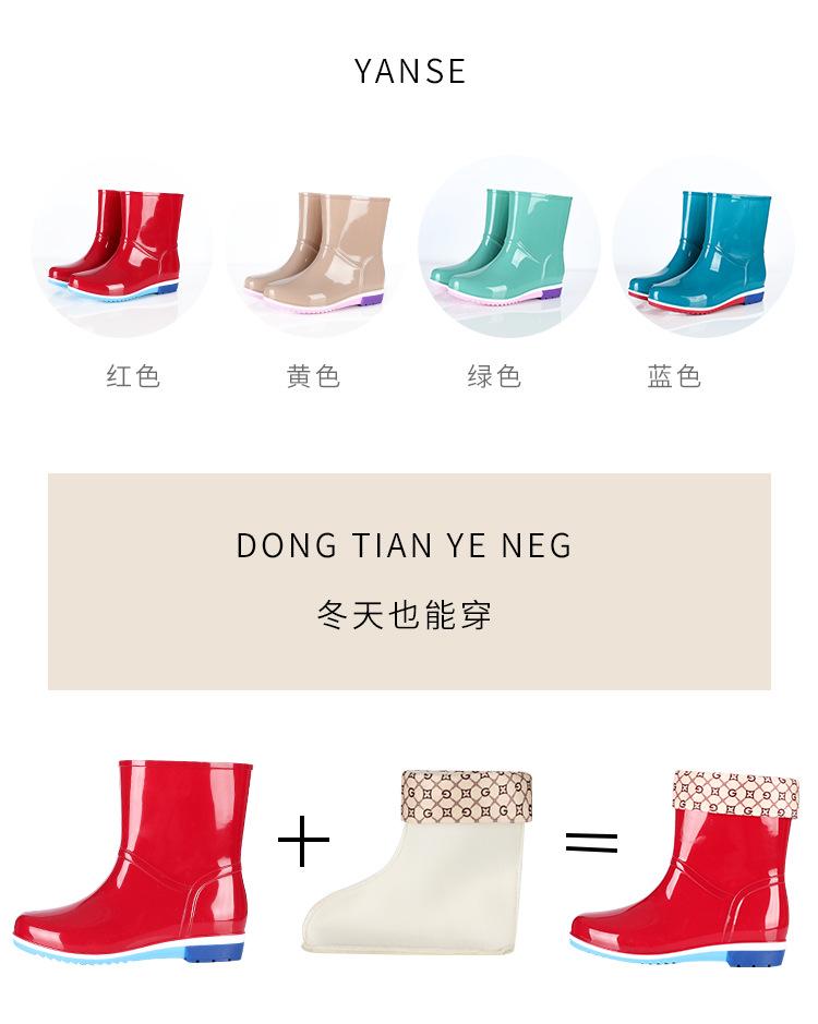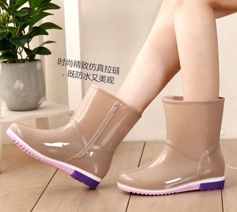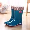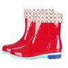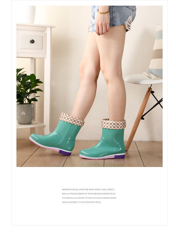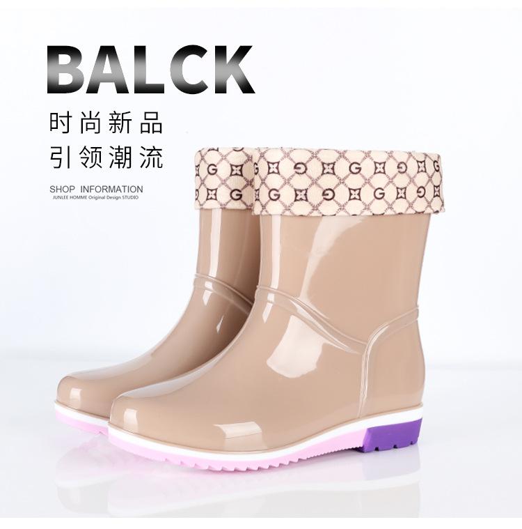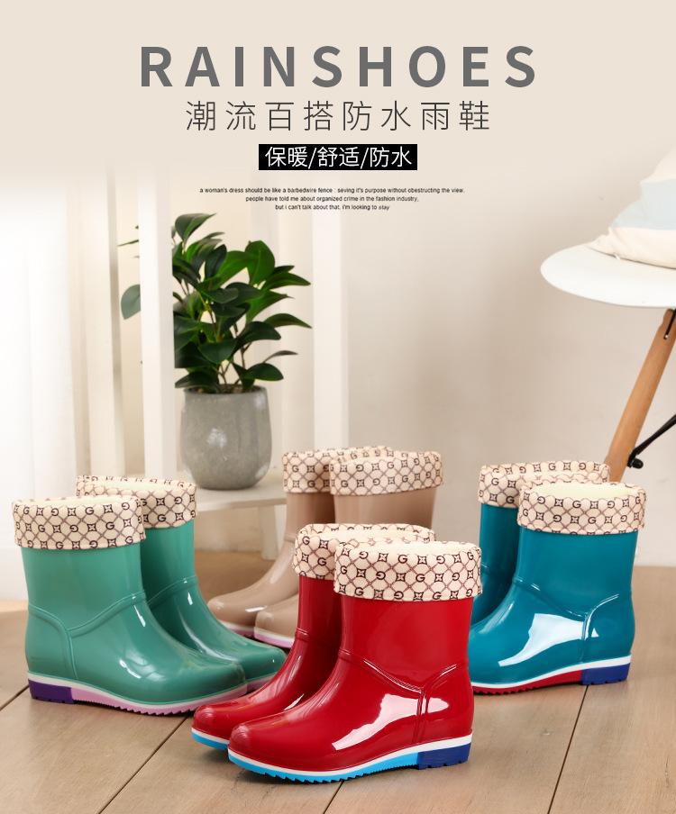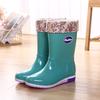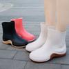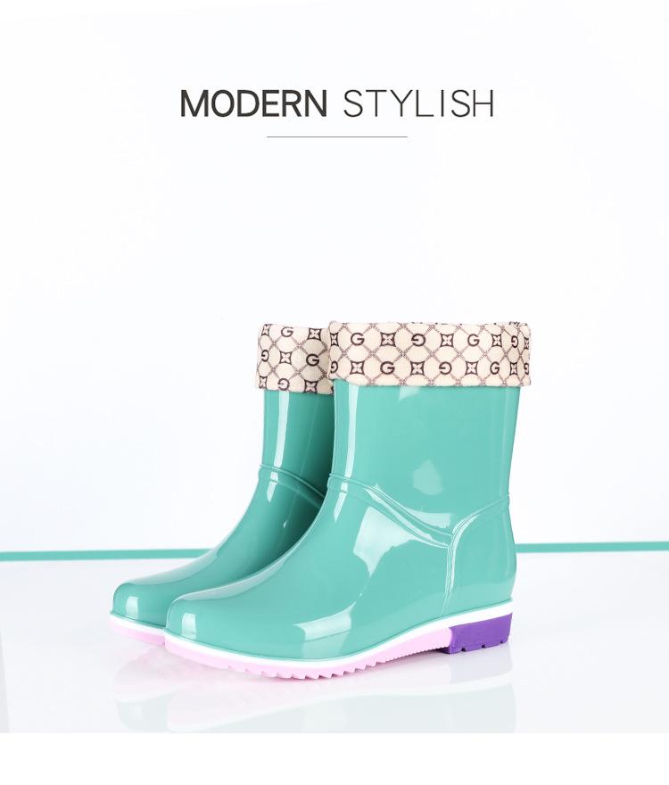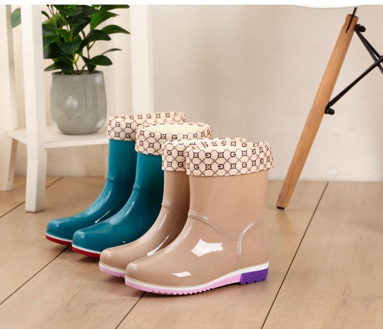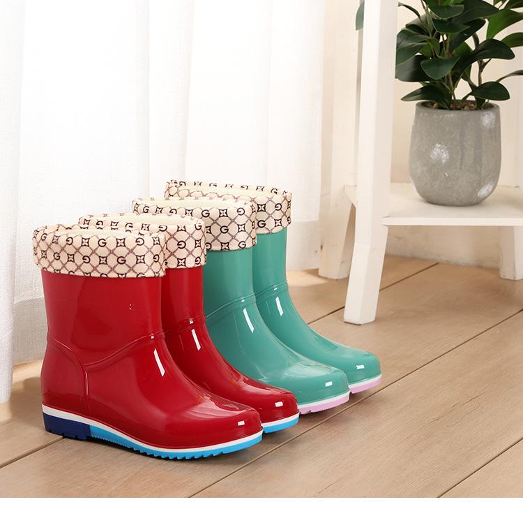 Botas de lluvia de media caña para mujer, botas de agua de caña corta, botas de agua para mujer cálidas con forro de terciopelo, zapatos de plástico antideslizantes e impermeables con suela de tendón de vaca, sobrecalzado al por mayor