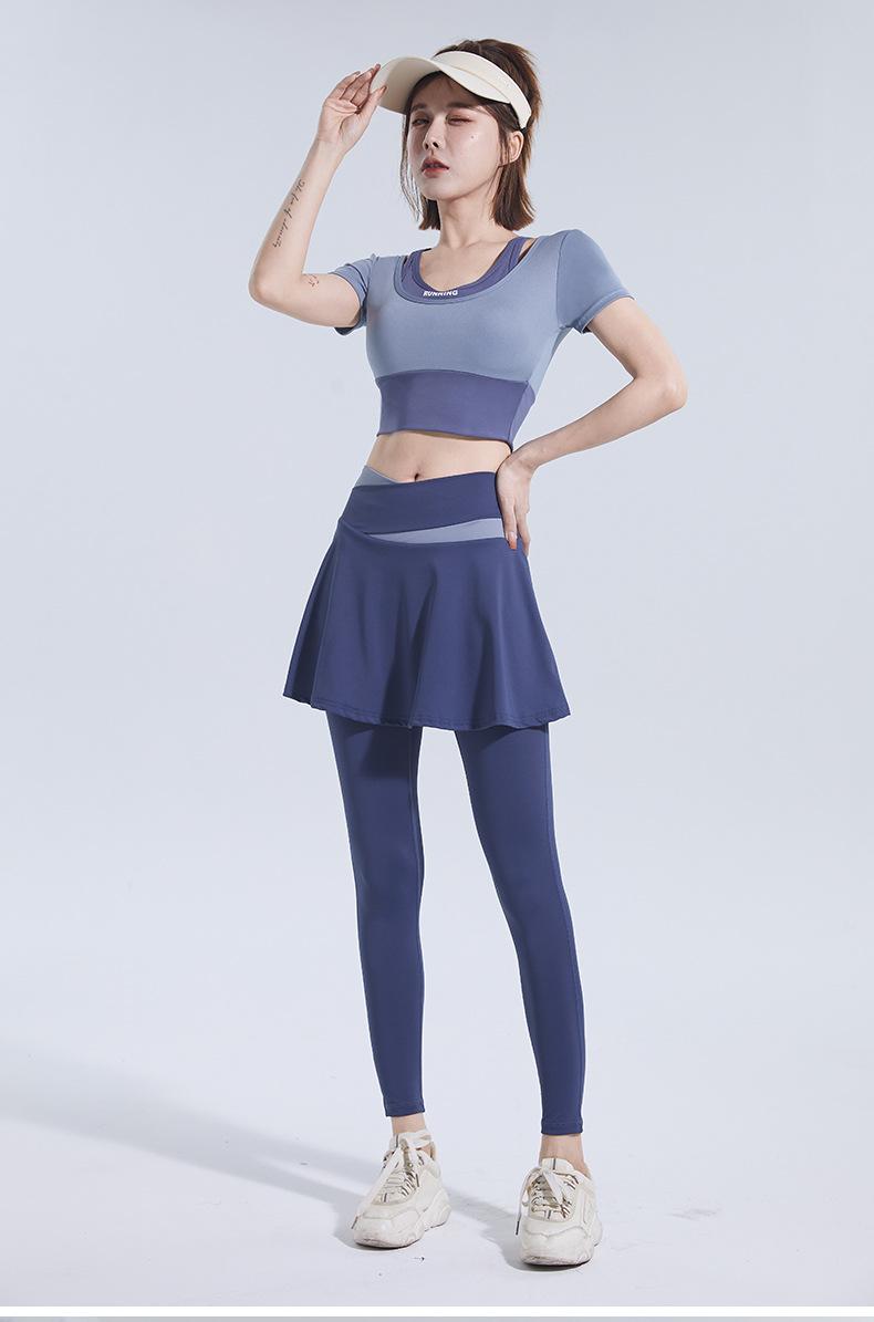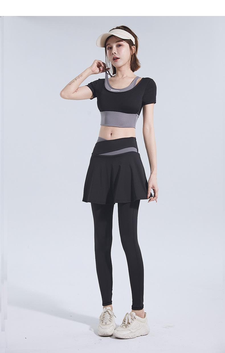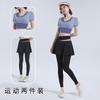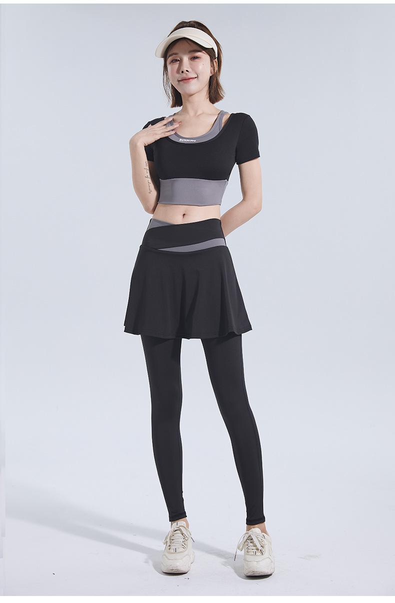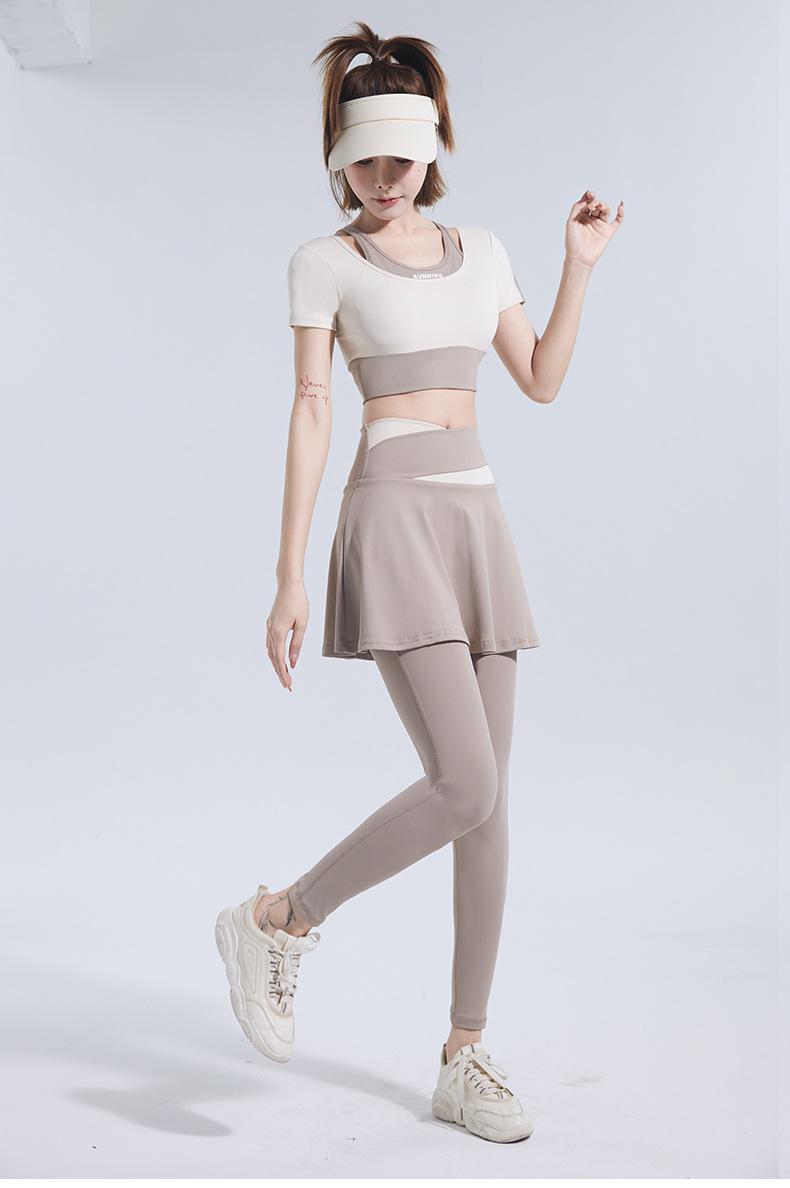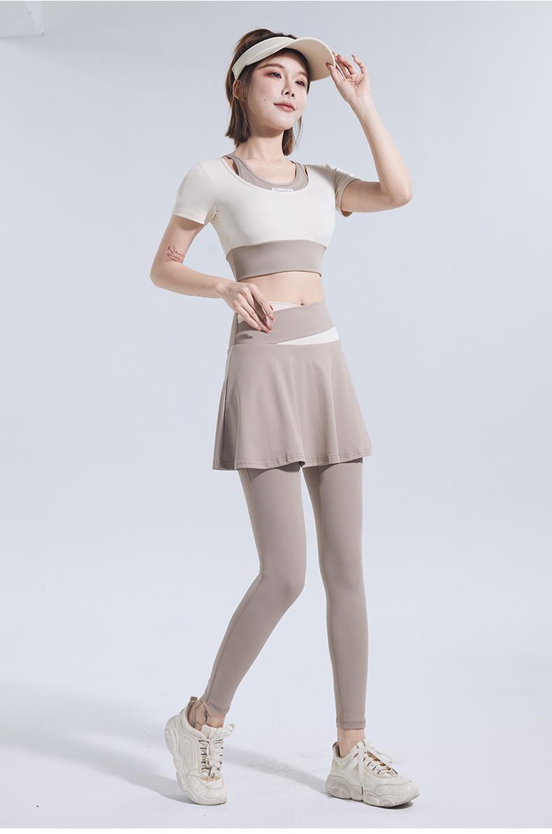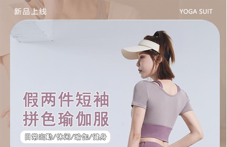 Traje de Yoga para Mujer Combinación de Colores Falso de Dos Piezas Manga Corta Secado Rápido Transpirable Deportivo Levanta Glúteos Cintura Alta Pantalones Ajustados Antitransparencia