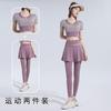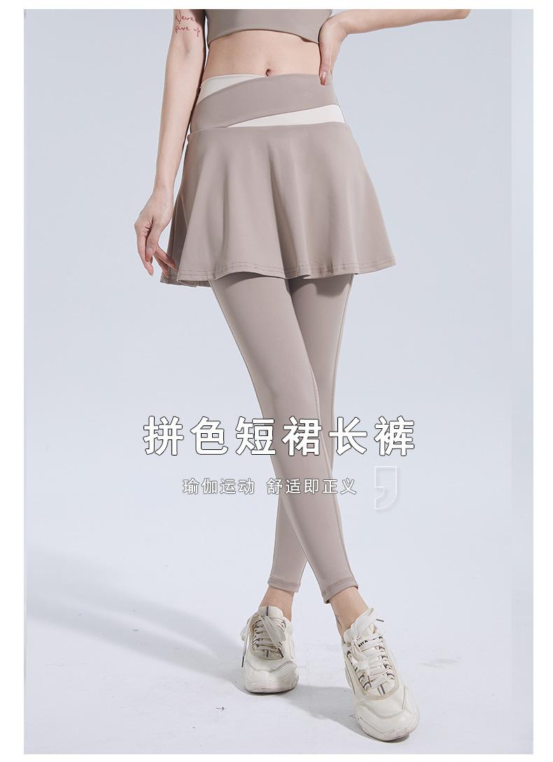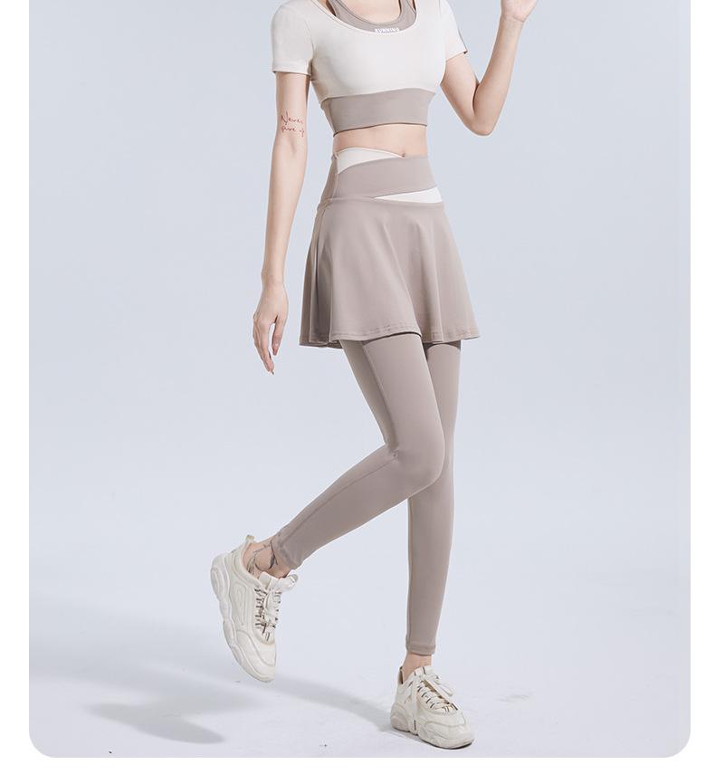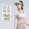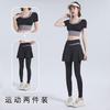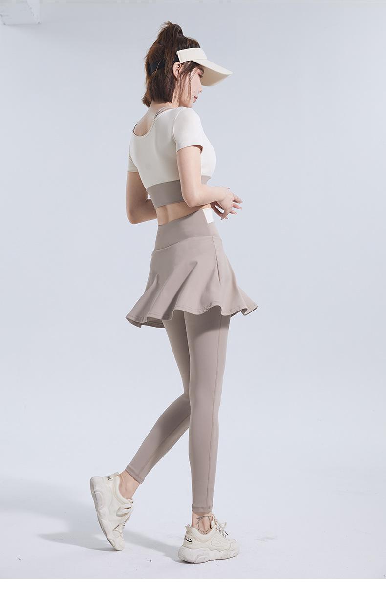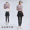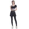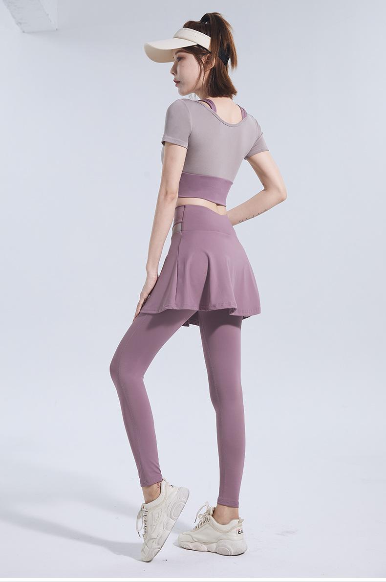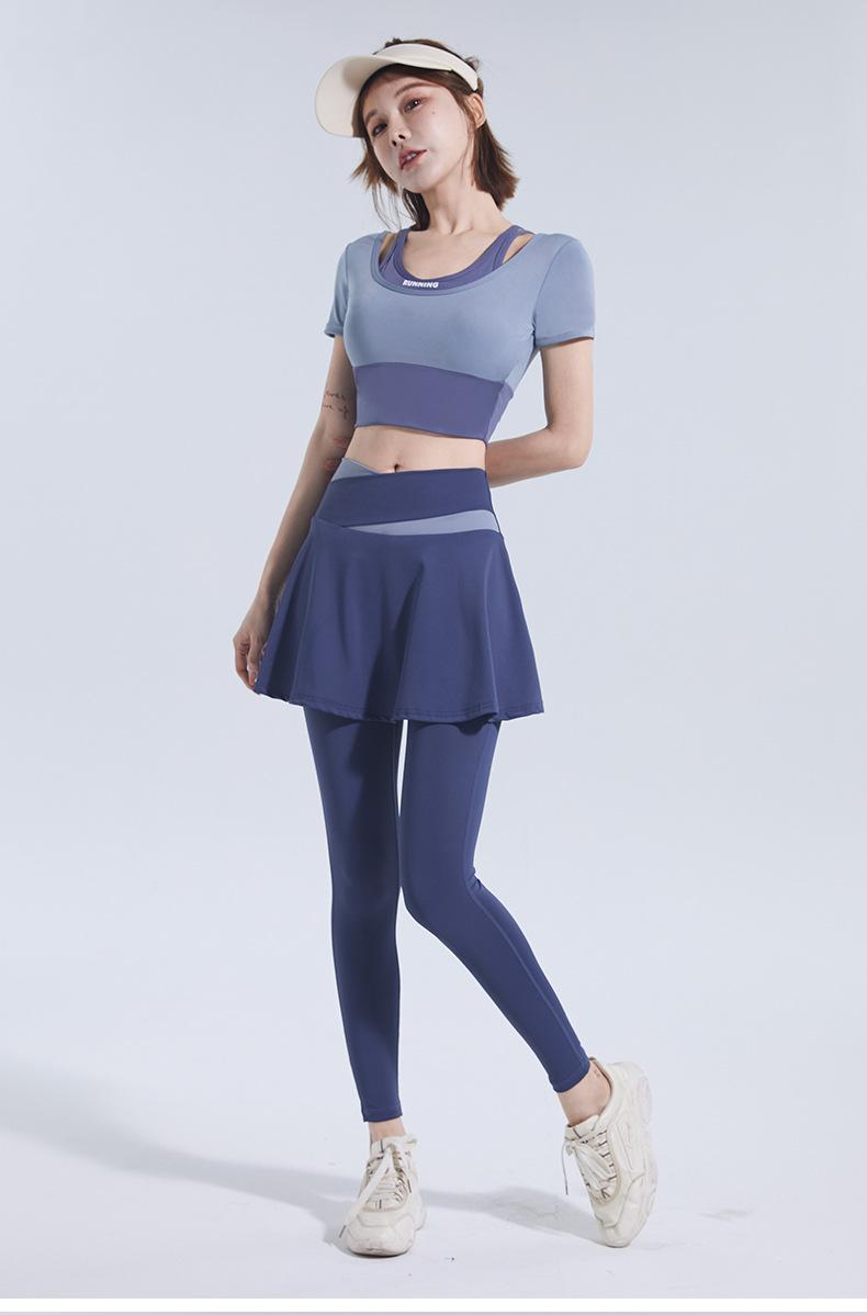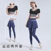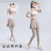 Traje de Yoga para Mujer Combinación de Colores Falso de Dos Piezas Manga Corta Secado Rápido Transpirable Deportivo Levanta Glúteos Cintura Alta Pantalones Ajustados Antitransparencia