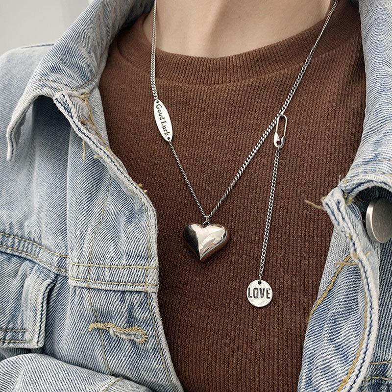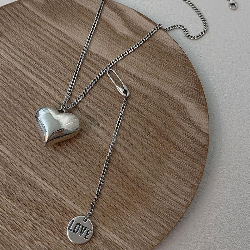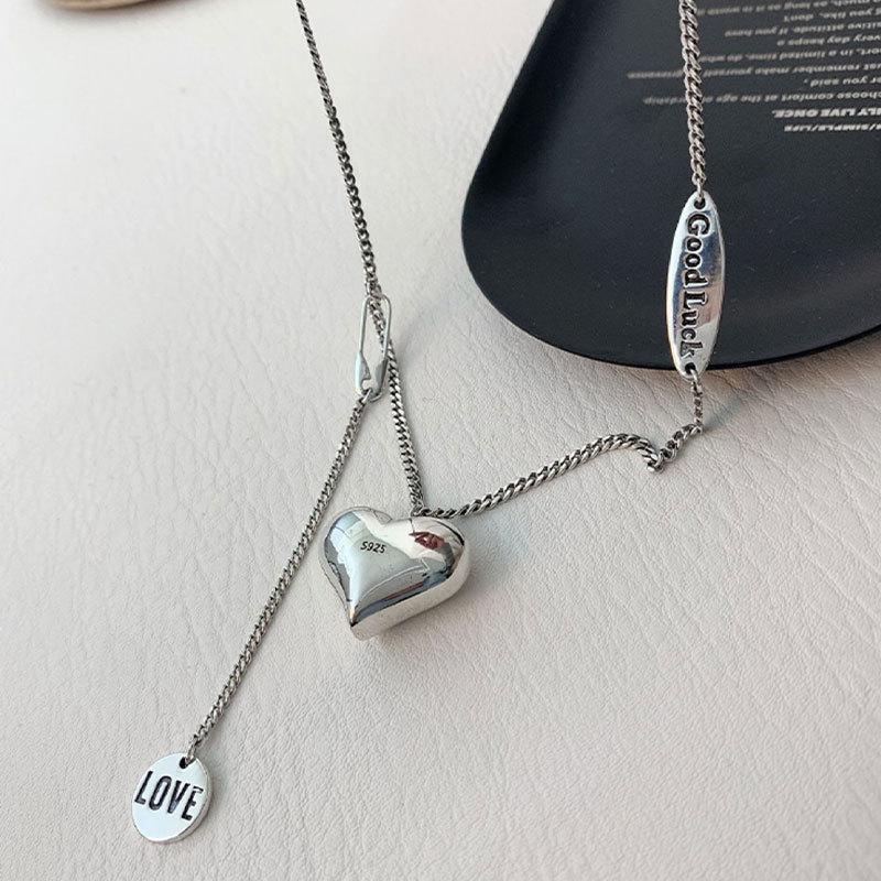 Collar con etiqueta en inglés de amor de plata esterlina 925 de estilo japonés y coreano, cadena de suéter ins para mujer, cadena de tanque exagerada con personalidad, nueva moda