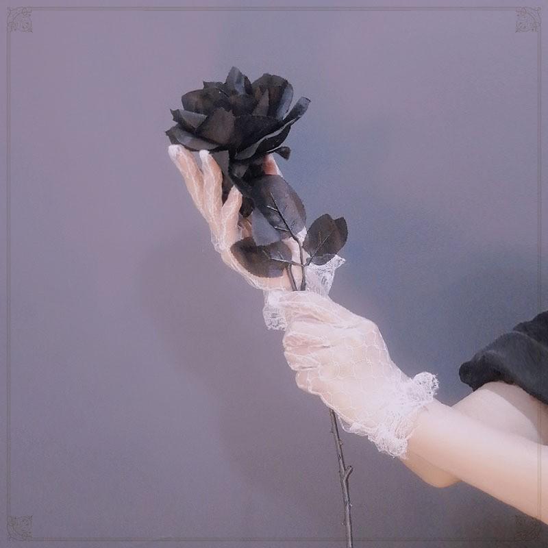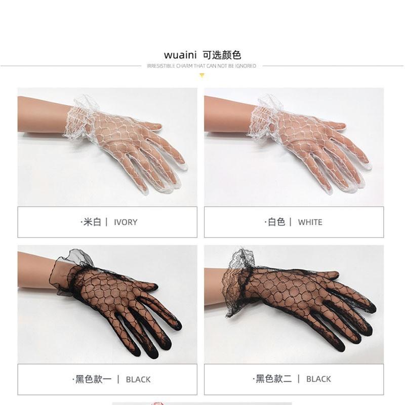 Guantes Delgados Sexy Lolita Mangas de Vestido de Novia Dulce Malla Transparente Encaje Lolita Estilo Verano 29