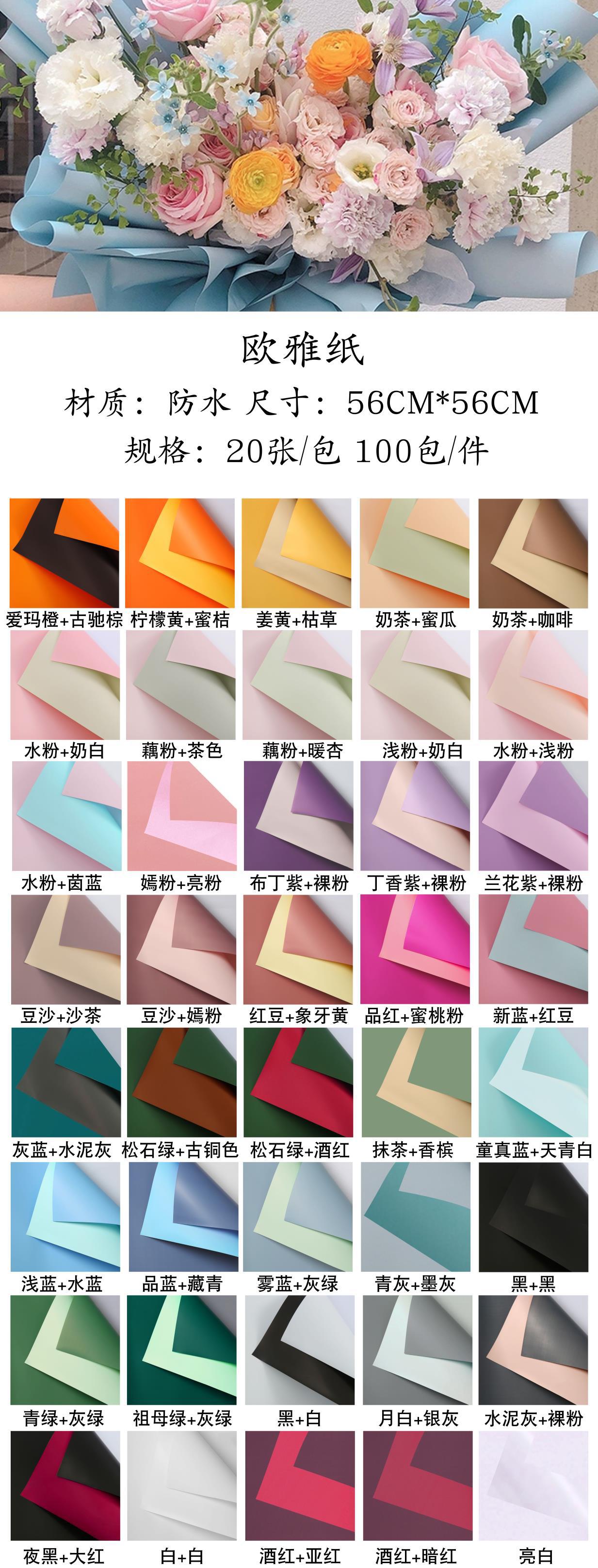 Papel para envolver flores, bicolor, doble cara, papel Ouya, venta al por mayor, engrosado, regalo, bricolaje, papel floral, ramo, bolsa de regalo, papel floral