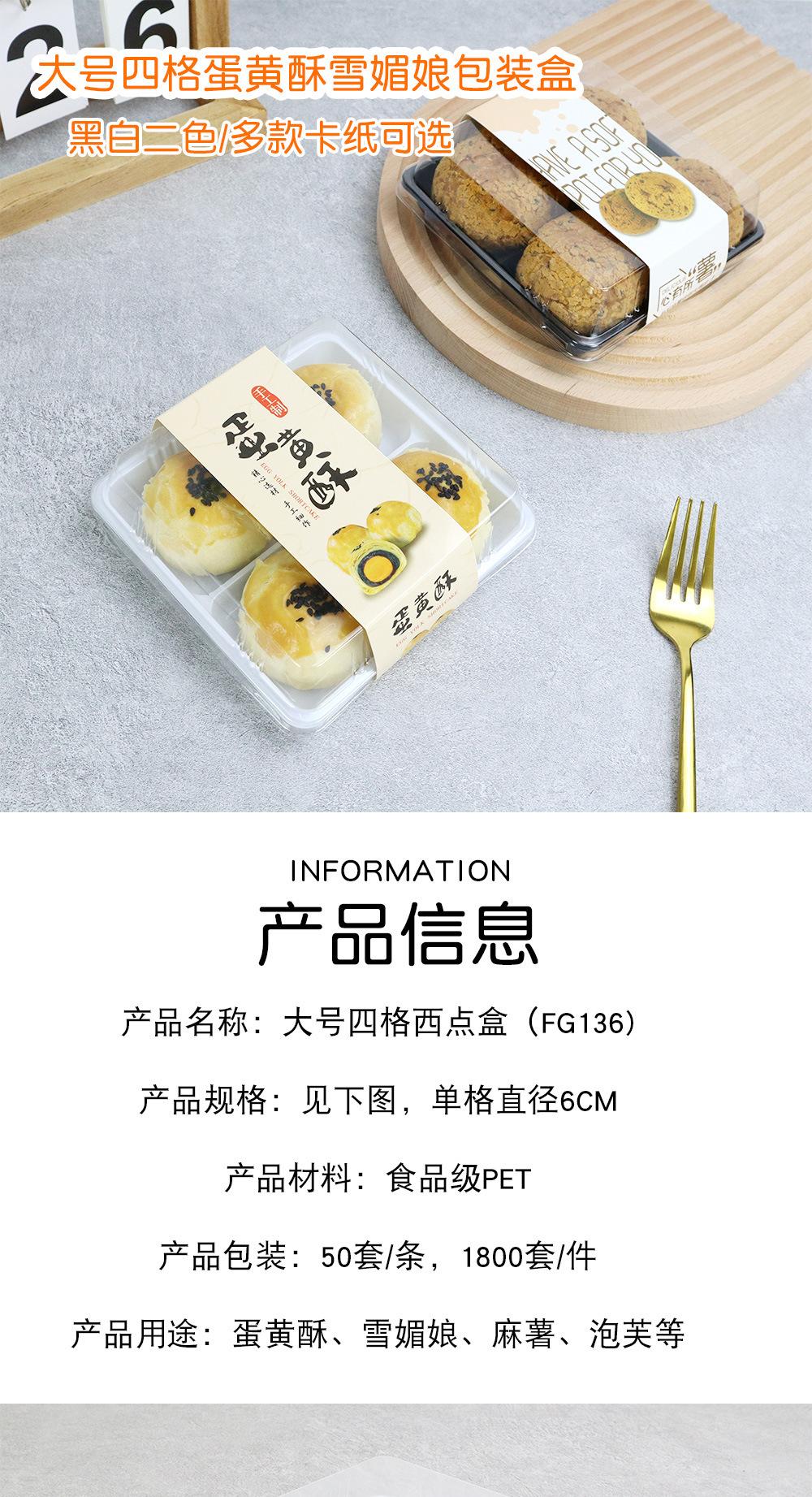 Caja de embalaje de yema de huevo crujiente Four Snow Mei Niang Meat Floss Beckham Puff Potato Caja de embalaje de plástico transparente para hornear West Point