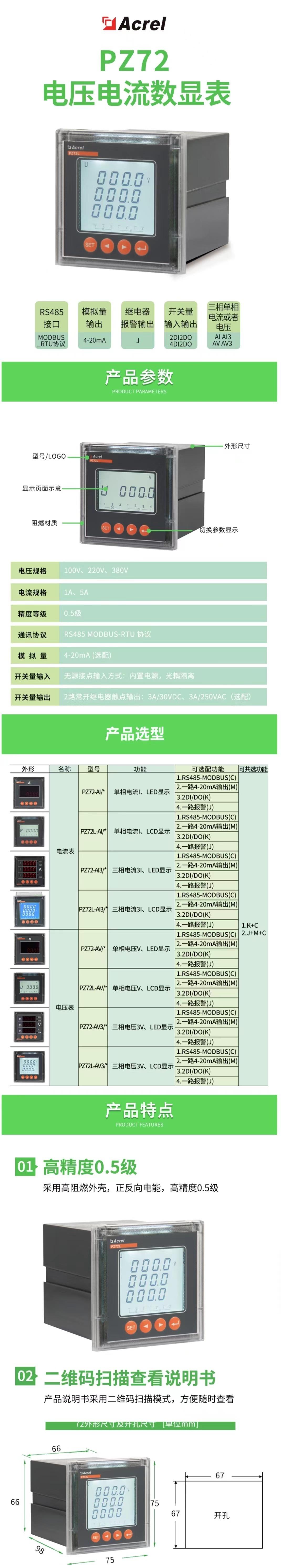 PZ72-AI basic payment, PZ72-AI/C with RS485 communication, PZ72-AI/M with one-way 4-20mA output, PZ72-AI/J bel...