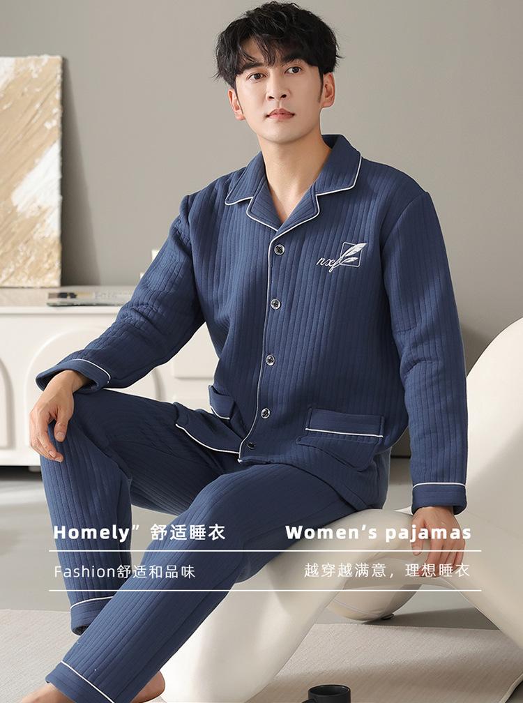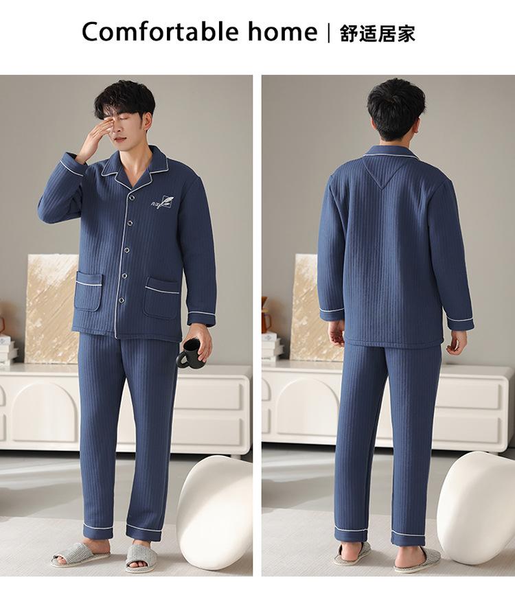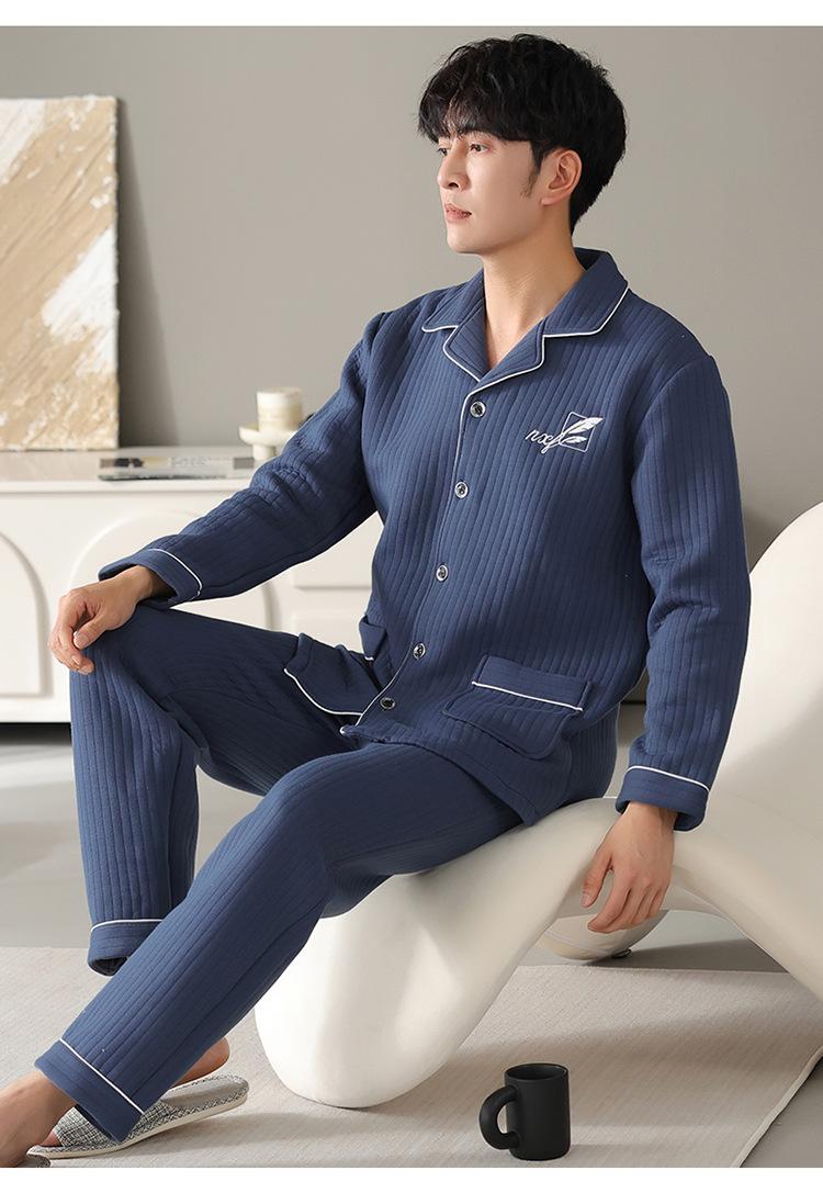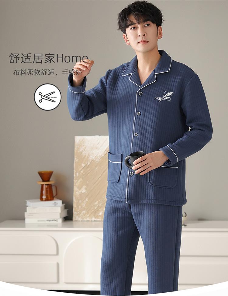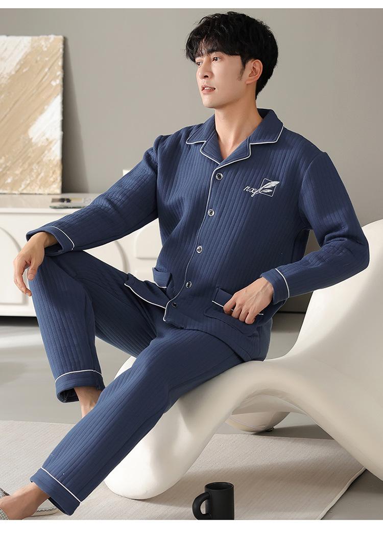 Nuevos pijamas de algodón de aire para hombre, otoño e invierno, de algodón sándwich grueso, de manga larga, ropa de casa, cálido, suelto, traje de talla grande