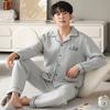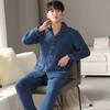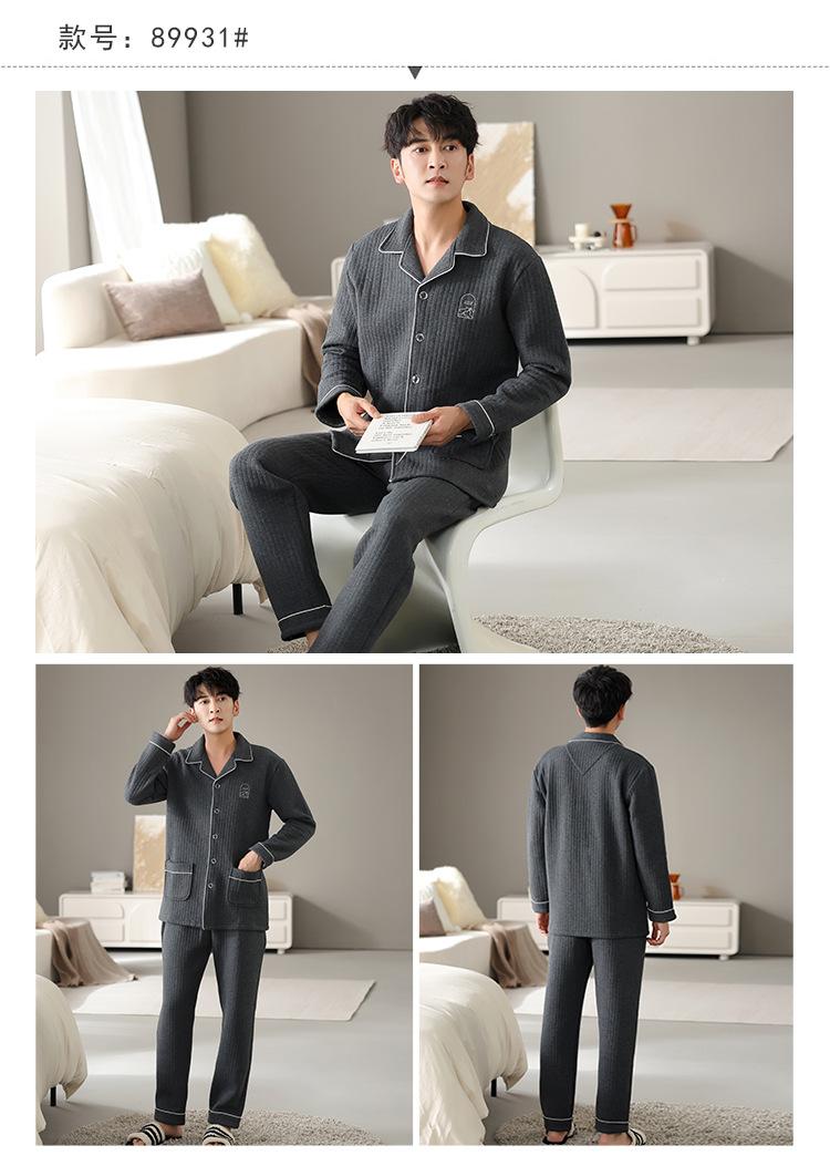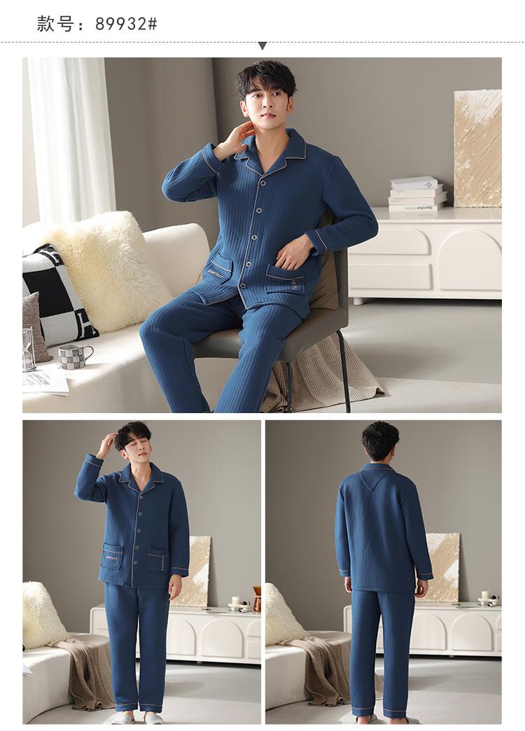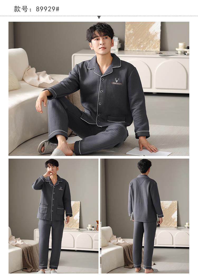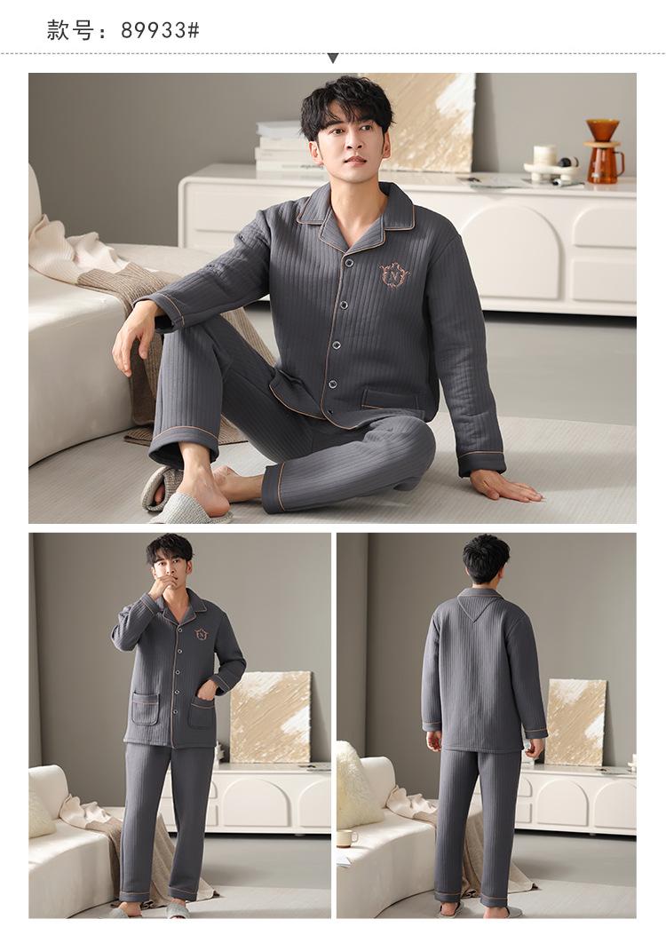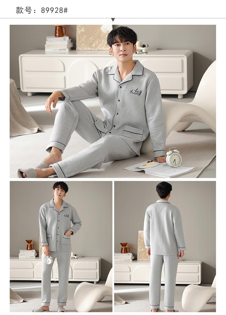 Nuevos pijamas de algodón de aire para hombre, otoño e invierno, de algodón sándwich grueso, de manga larga, ropa de casa, cálido, suelto, traje de talla grande