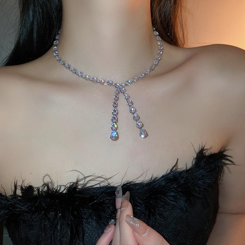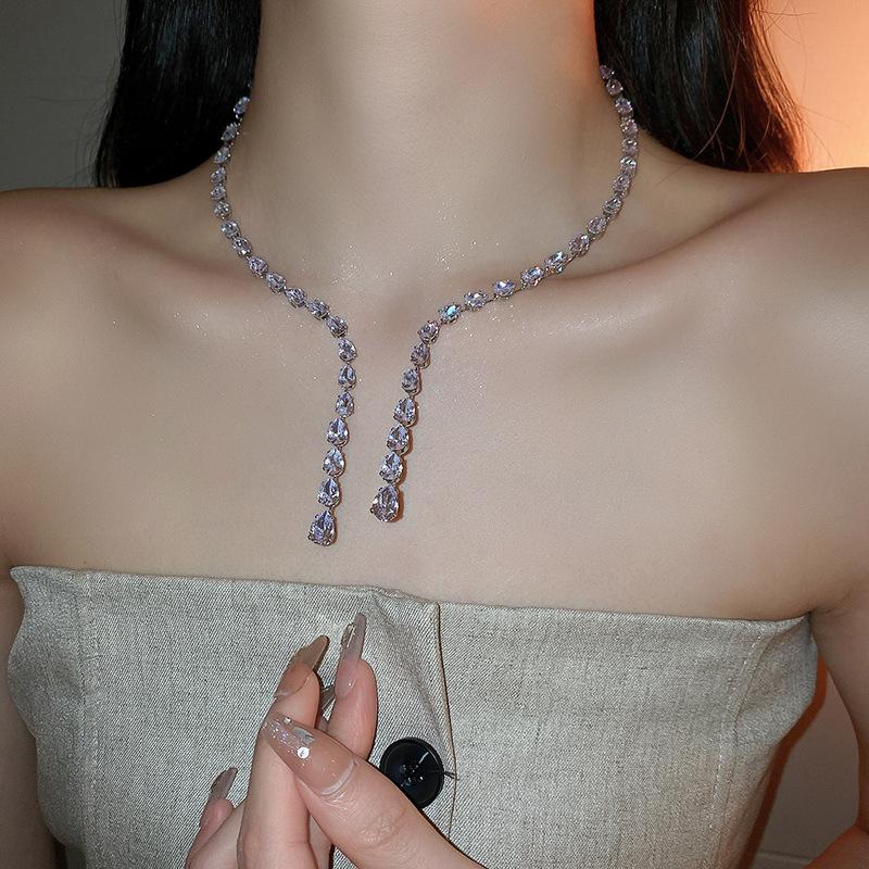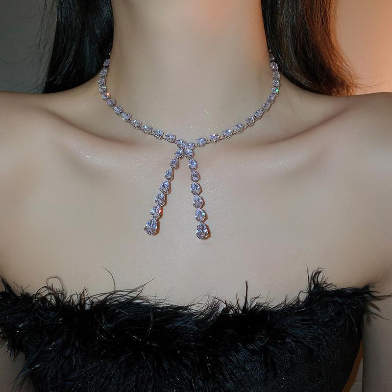 Collar ajustable con forma de gota de agua de circón, diseño de nicho, gargantilla creativa, elegante, ligero, de lujo, de alta calidad.