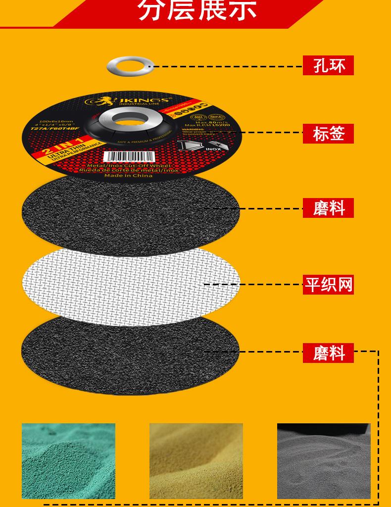 Fabricante de origen transfronterizo, pieza de corte de acero, pieza de corte de amoladora angular de acero inoxidable, pieza de muela de malla de fibra de resina, venta al por mayor