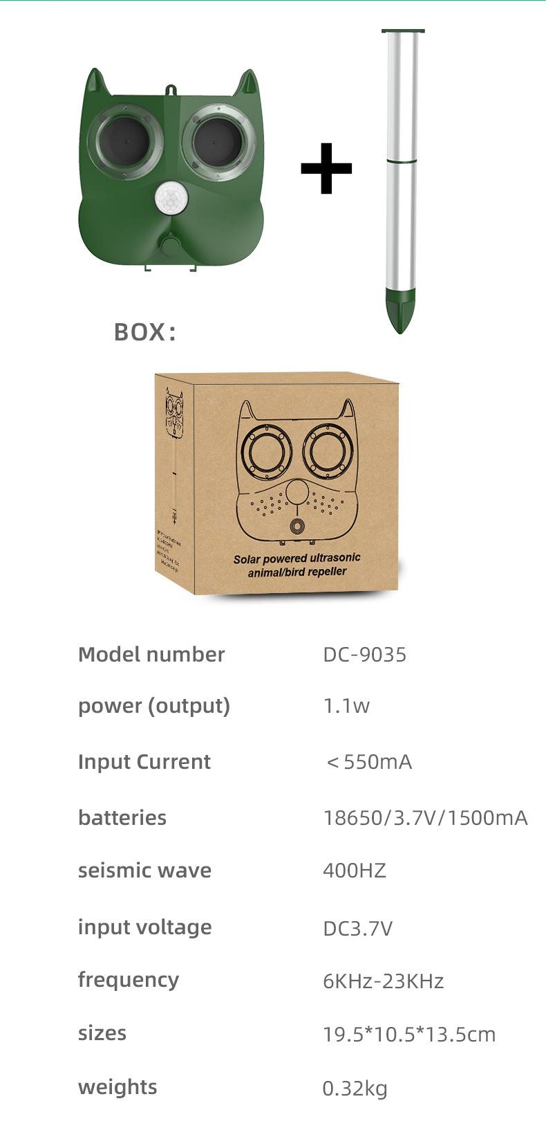 Repelente Ultrasónico de Animales Solar Repelente de Ratas Repelente Ultrasónico de Animales por Inducción Infrarroja Repelente de Aves