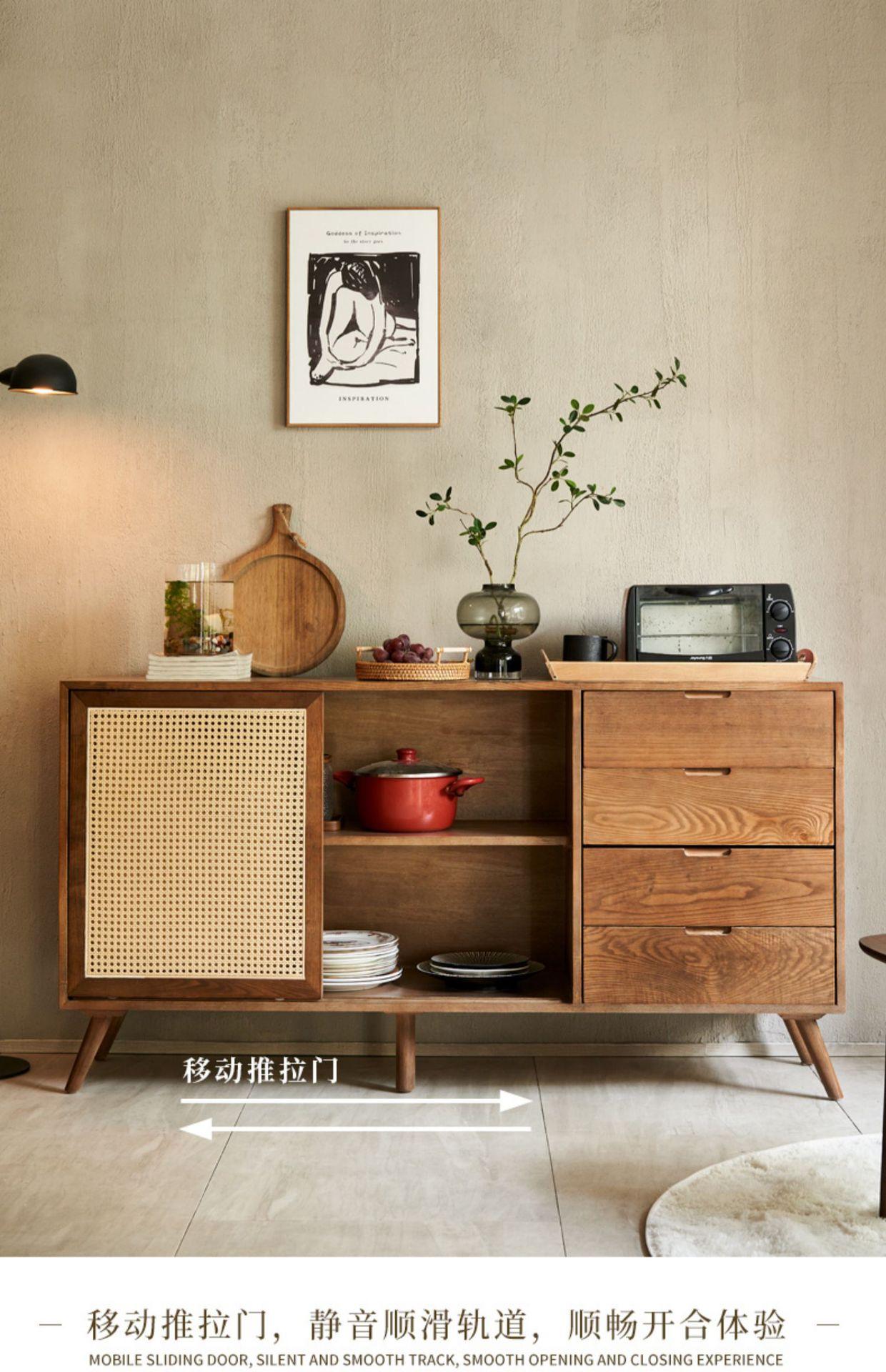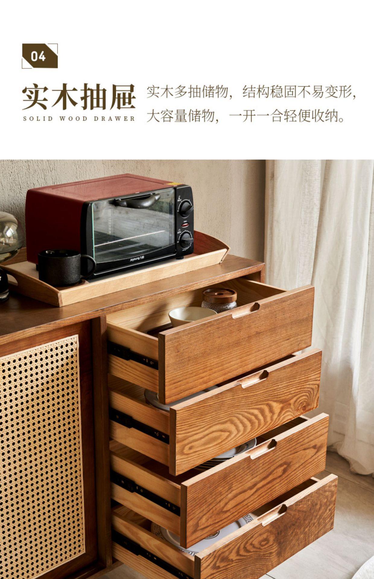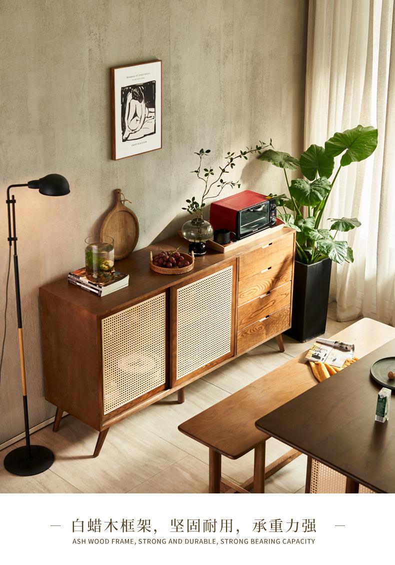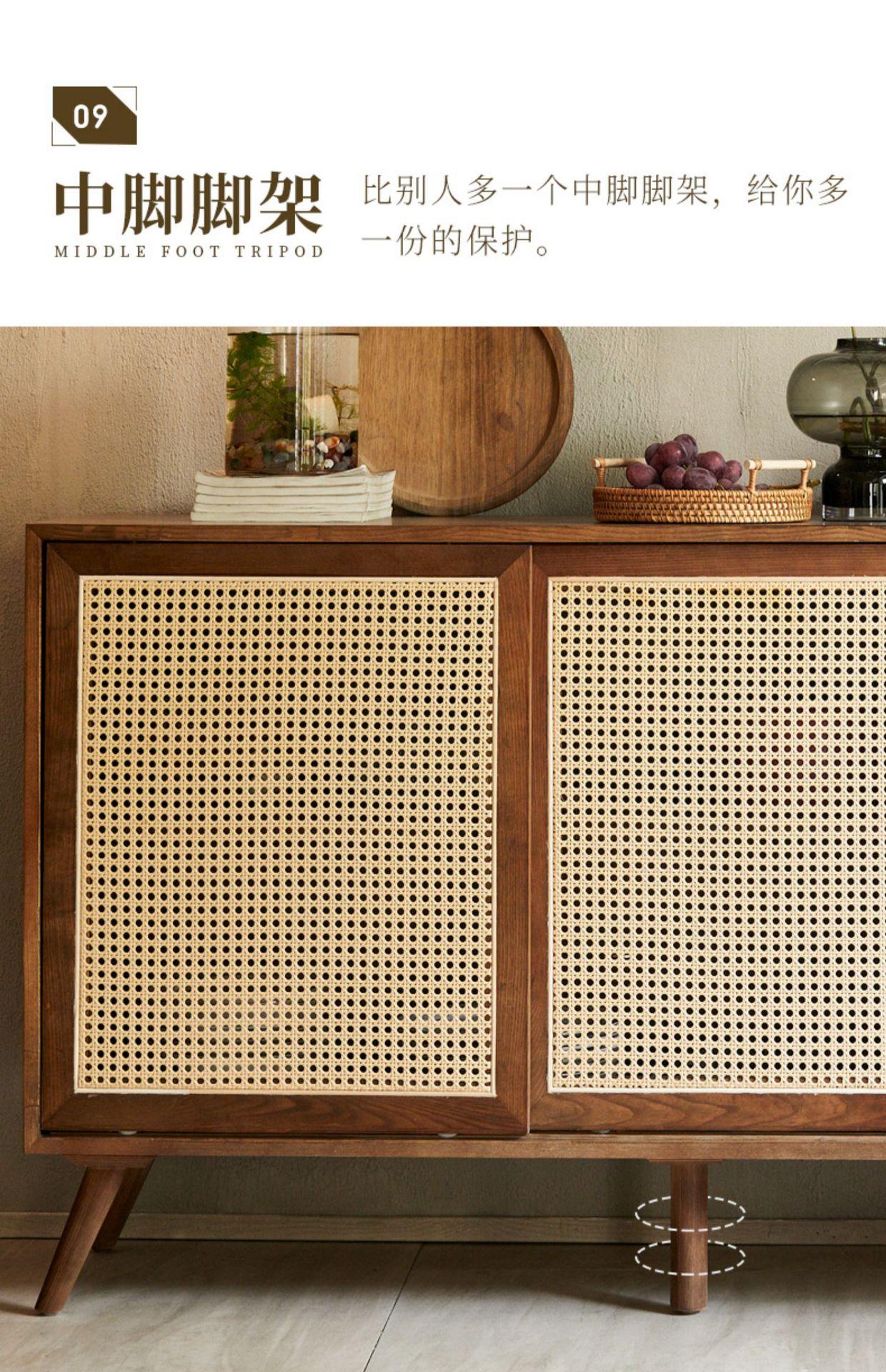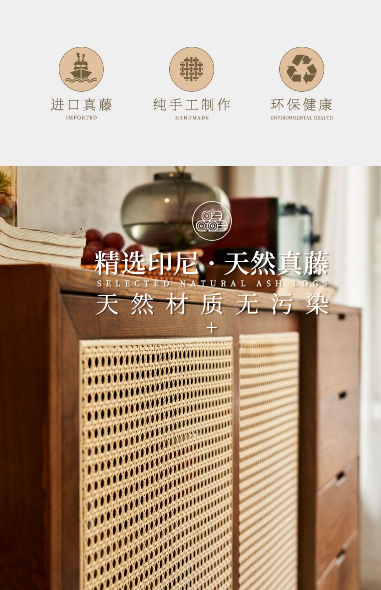Aparador multifuncional de ratán de estilo japonés, moderno, sencillo y multifuncional, de madera maciza de fresno, con doble puerta y altura completa.