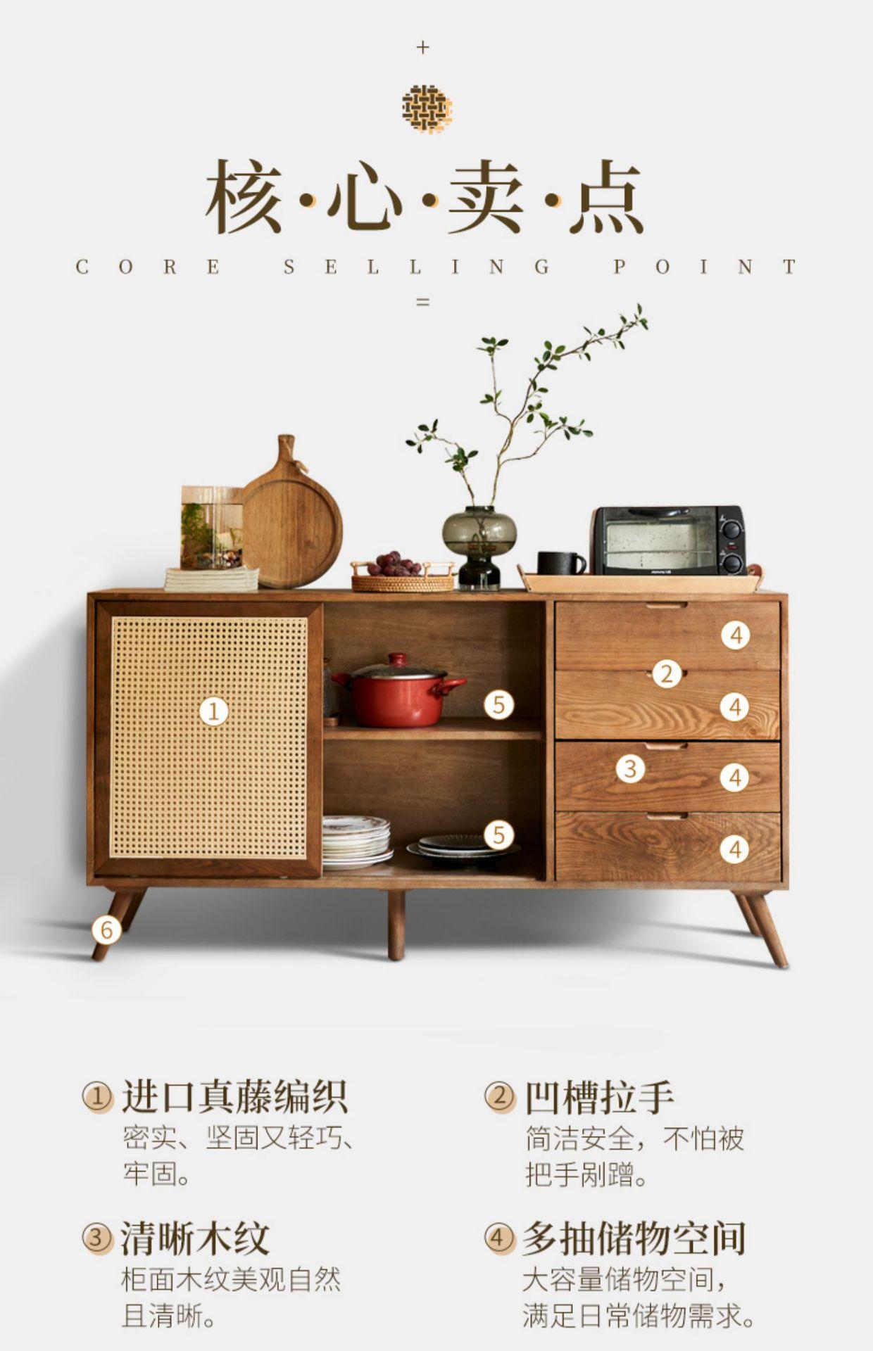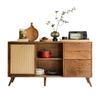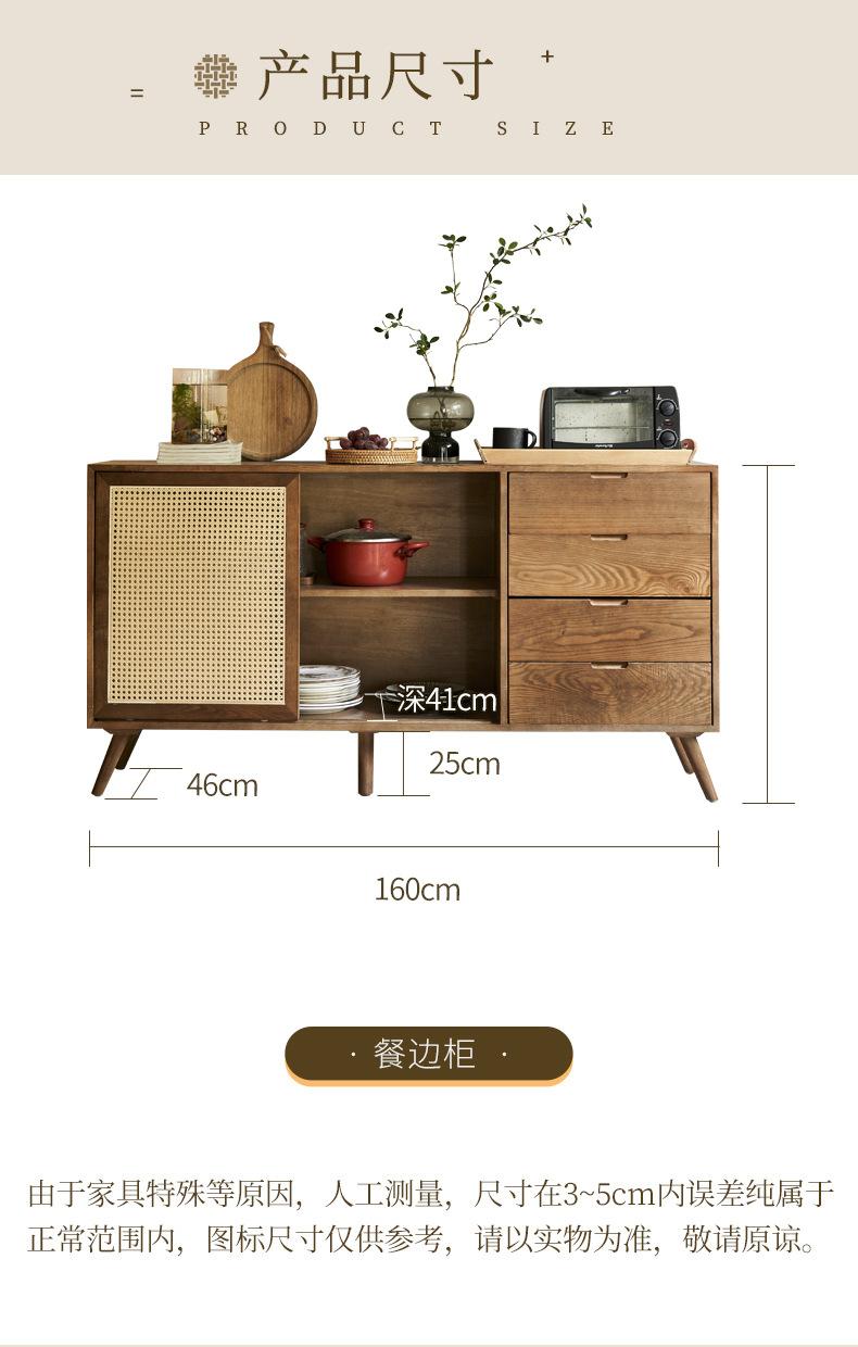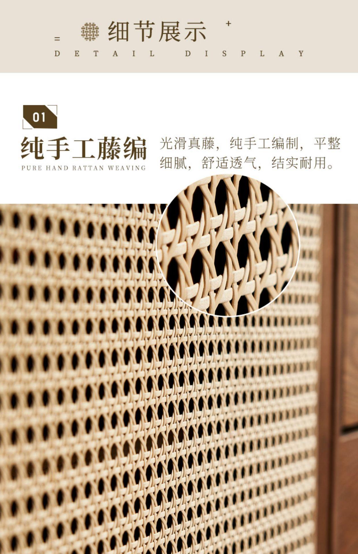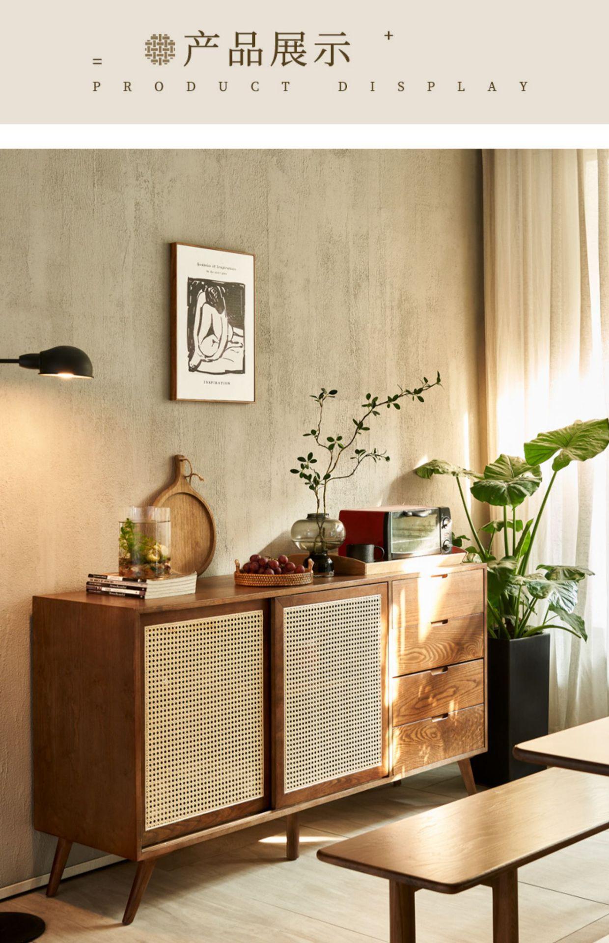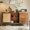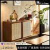 Aparador multifuncional de ratán de estilo japonés, moderno, sencillo y multifuncional, de madera maciza de fresno, con doble puerta y altura completa.