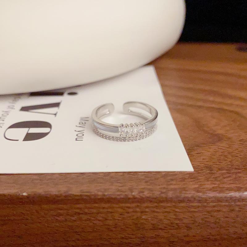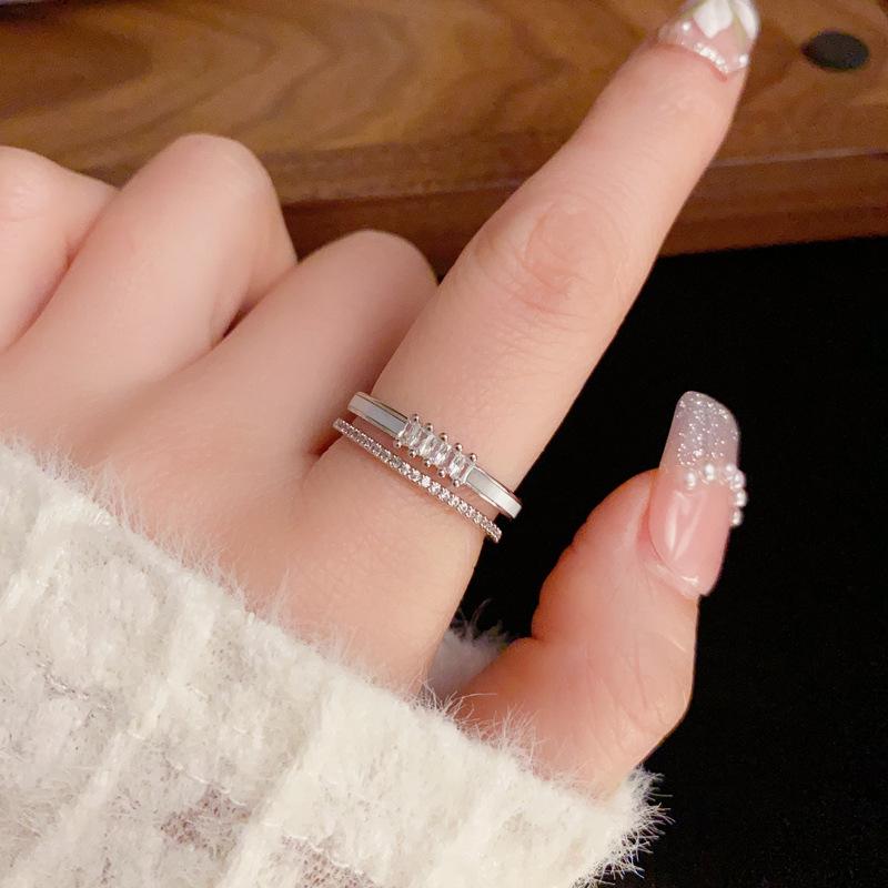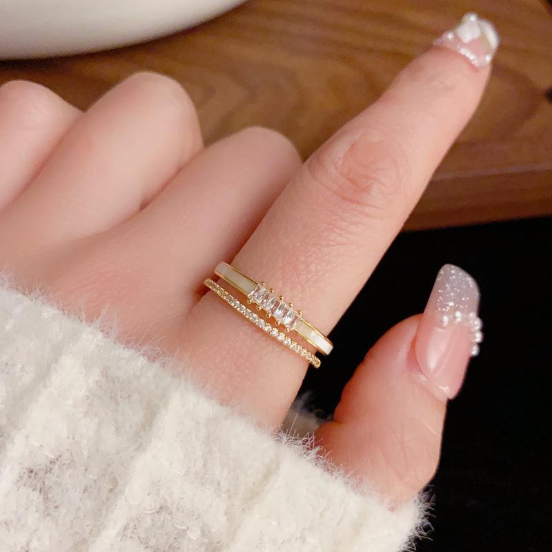 Diseño de nicho lujo ligero alta gama concha de circonita anillo ajustable de doble capa con apertura anillo simple de moda venta al por mayor