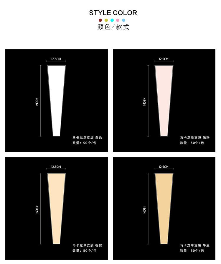 Champagne macaron single bag (50 pieces); multiple sizes available, see sku for details
