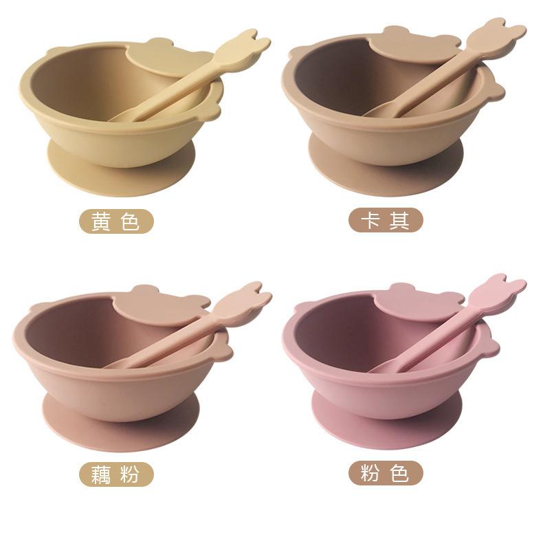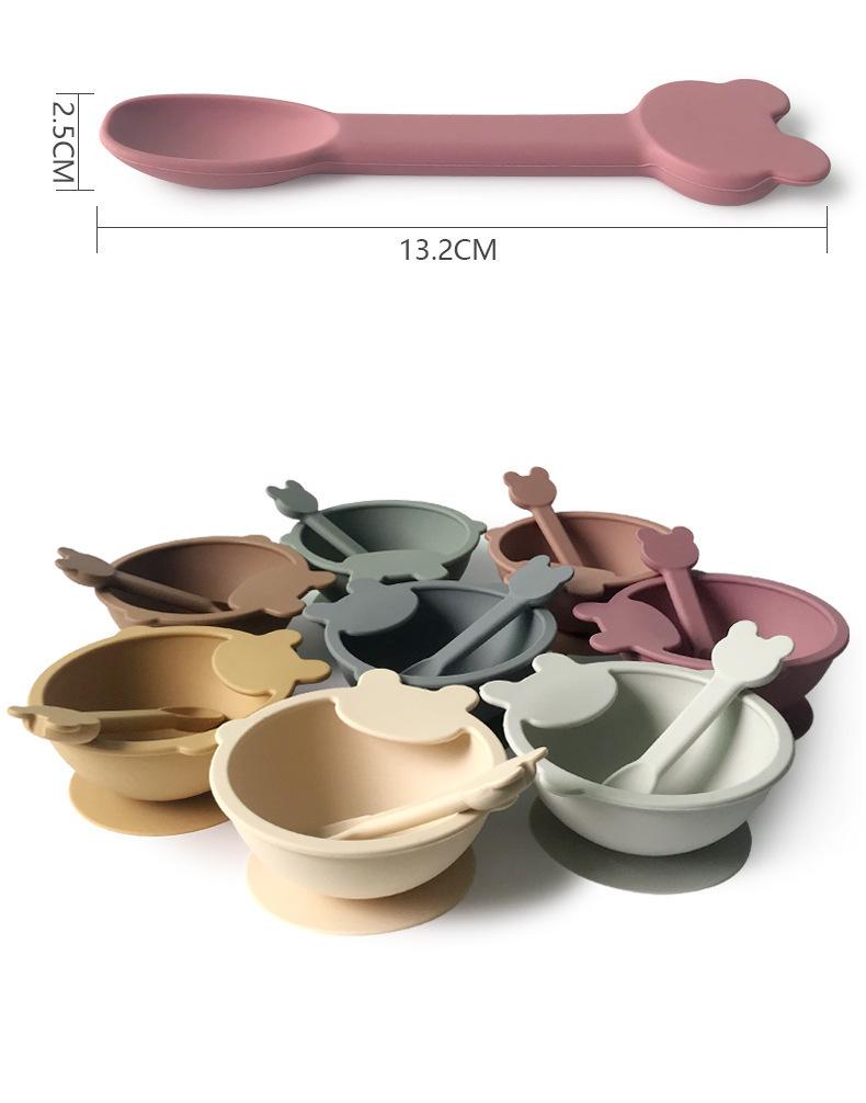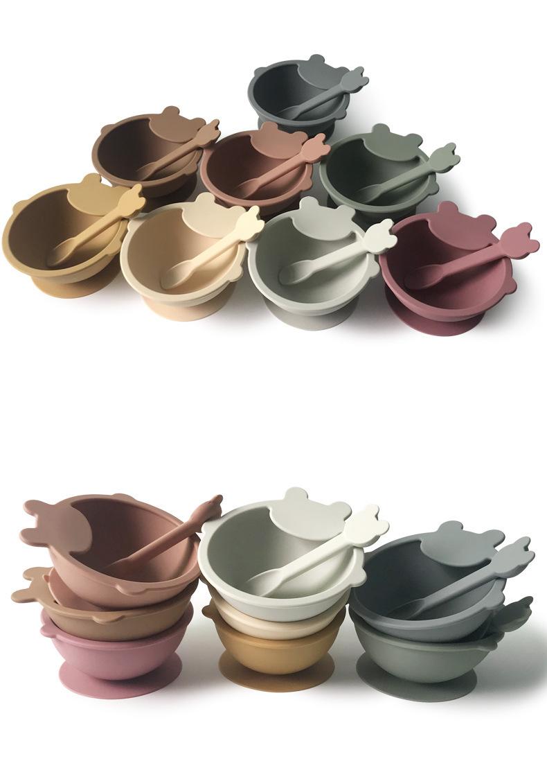 Cuenco de silicona para comida de bebé Leton con ventosa, juego de cucharas pequeñas, bandeja de comida, vajilla anticaída para niños, cuenco para comer al por mayor