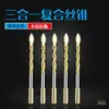 Juego de taladro para pared de cemento con triángulo dorado para azulejos, abridor de agujeros para vidrio, taladro eléctrico, perforación de aleación, taladro triangular